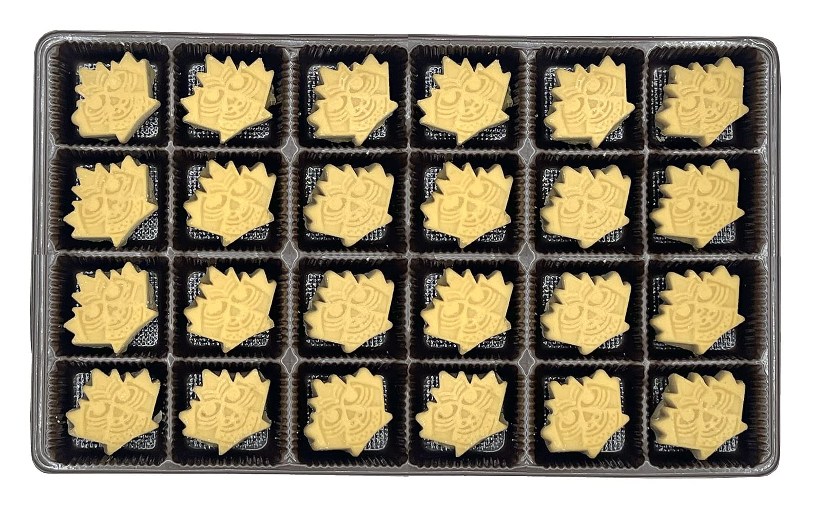Q: How many pieces are included in a box of Sapsquatch Organic Maple Candy?A: Each box of Sapsquatch Organic Maple Candy contains 24 individual pieces, with each piece weighing 0.42 ounces.