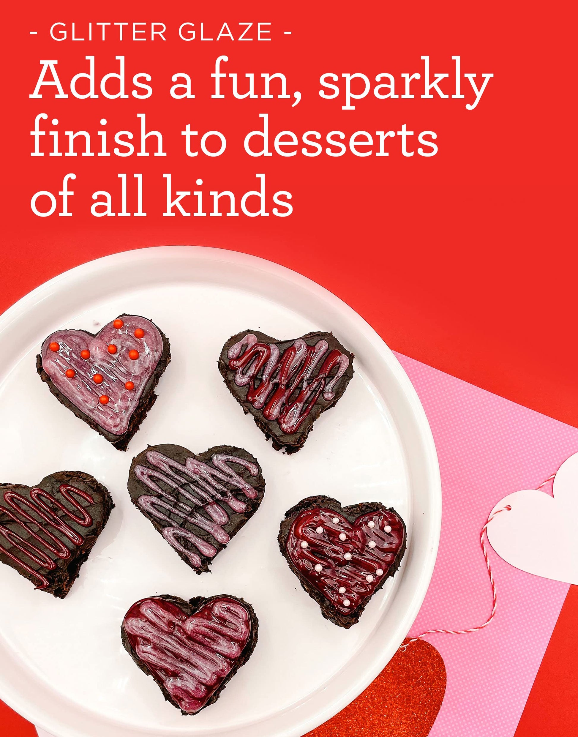 Q: What is Satin Ice Glitter Glaze used for?A: Satin Ice Glitter Glaze is perfect for decorating cakes, cupcakes, brownies, doughnuts, and cookies, adding a fun sparkly finish to any sweet treat.