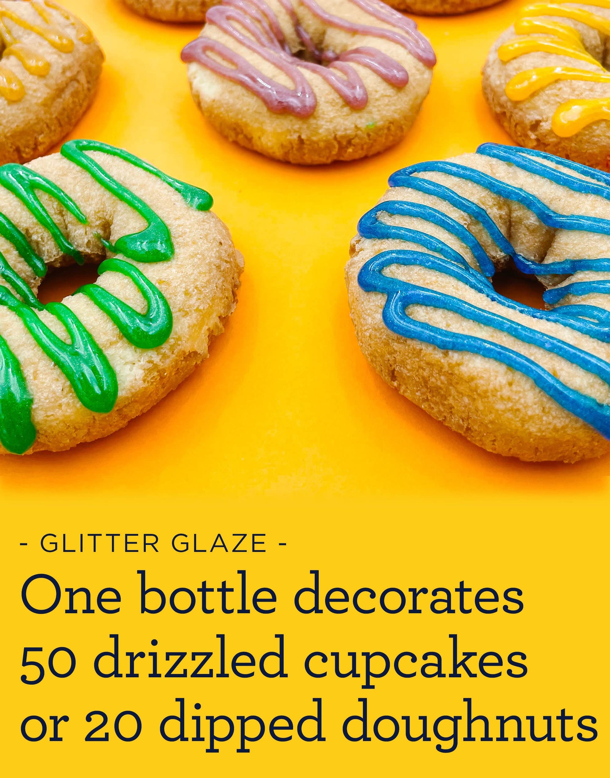 Satin Ice Glitter Glaze adds a fun sparkly finish to desserts, cakes, doughnuts, cookies and so much more! With bold colors and delicious vanilla flavor, this ready-to-use glaze will transform any sweet treat. Simply squeeze the bottle to dip, drip, & drizzle!