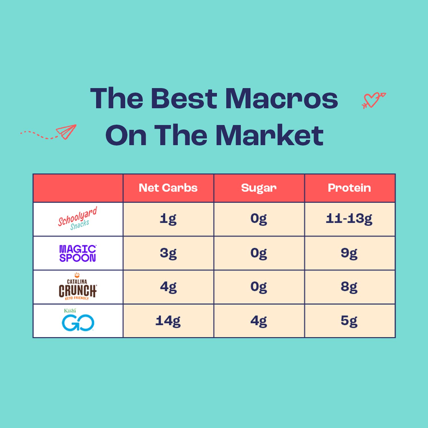 - Q: How can I incorporate Schoolyard Snacks Keto Cereal into my diet? A: You can enjoy Schoolyard Snacks Keto Cereal as a breakfast option or a convenient snack. Simply pour the contents of one pouch into a bowl and add your favorite low-carb milk or yogurt for a satisfying meal. It's also great for on-the-go snacking.
