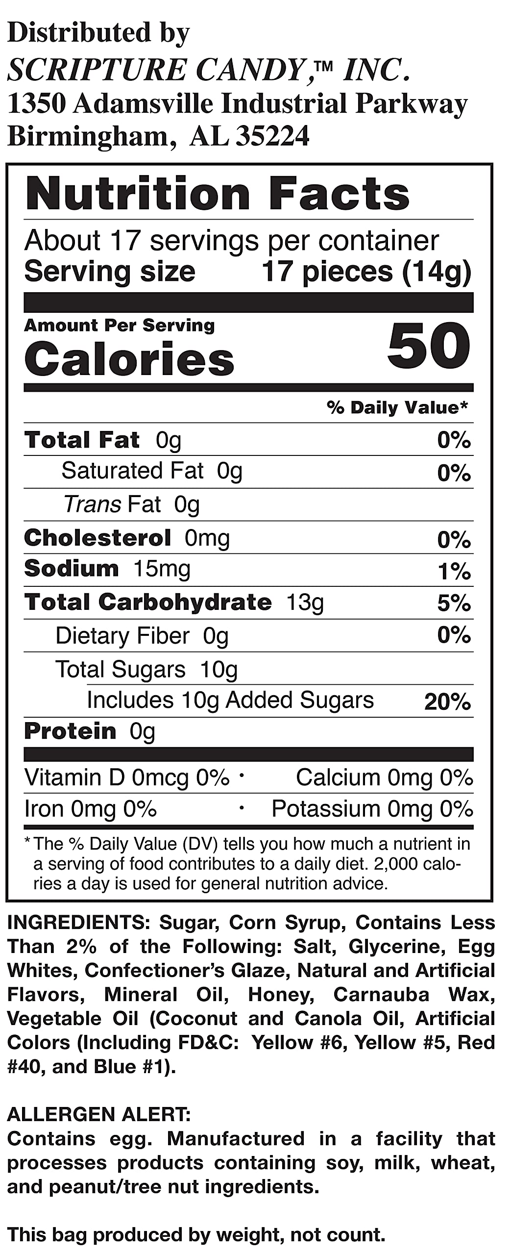 - Q: Do Scripture Candy Promise Seeds contain any allergens? A: Scripture Candy Promise Seeds are made with real honey, but they do not list specific allergens such as nuts or gluten. However, it’s always best to check the packaging for the most accurate ingredient information if you have dietary concerns.