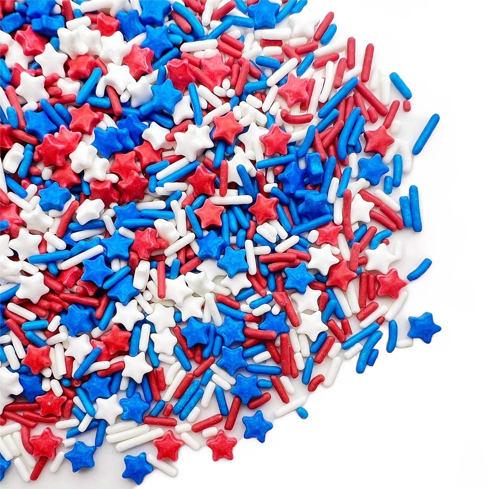 Q: How can I use these sprinkles for decorating?A: These red, white, and blue star sprinkles are perfect for decorating cupcakes, cakes, cookies, and ice cream. For best results, add them after baking to prevent melting.
