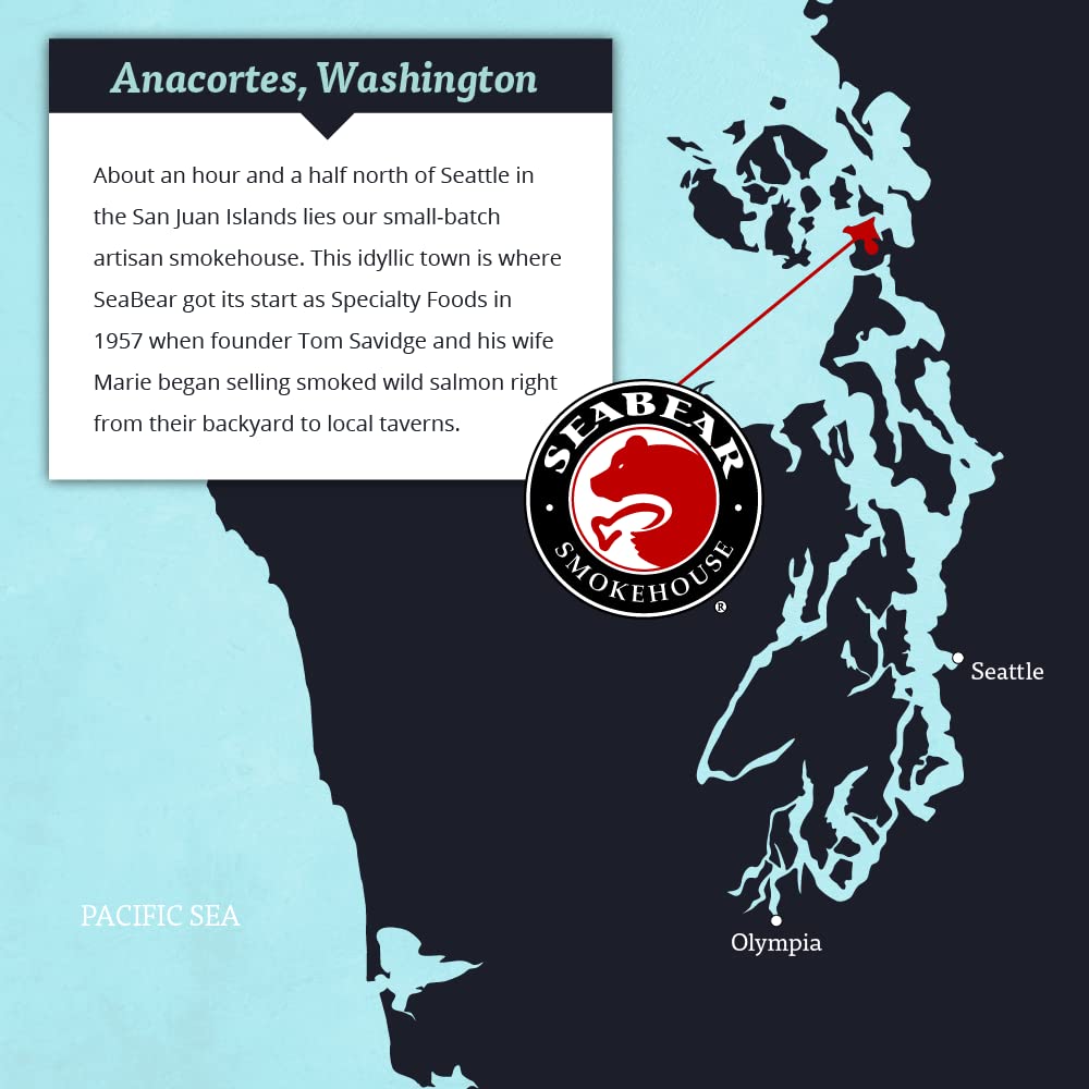 - Vacuum sealed in SeaBear’s Gold Seal pouch for shelf stability.