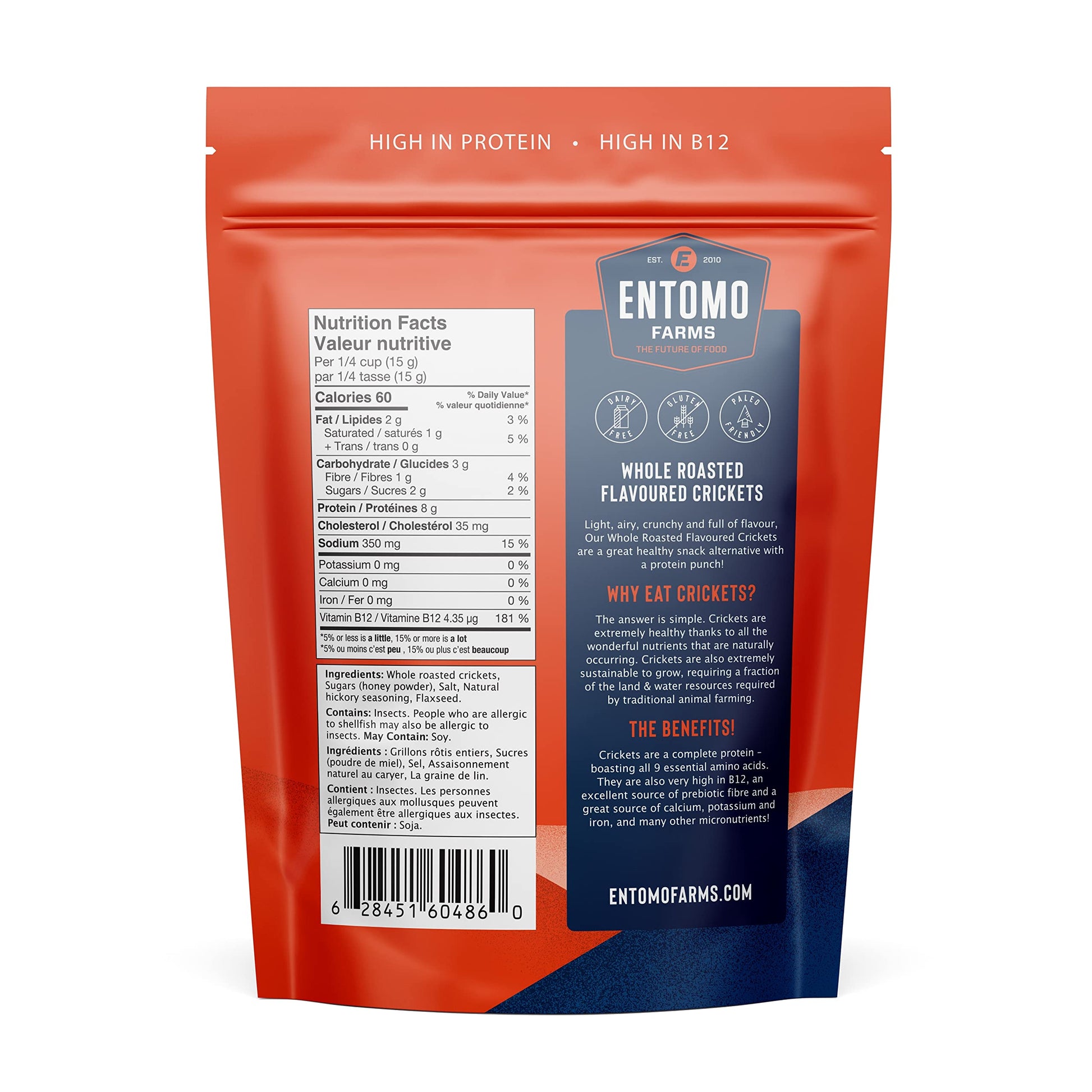 Our whole roasted, Seasoned Crickets are a great way to add a delicious crunch and powerful nutrients to almost anything you can imagine. Whole roasted crickets are small, light, airy, crunchy and have a similar taste to roasted sunflower seeds. Are you new to eating crickets? Try our seasoned crickets on a salad, pizza, taco or as a crunchy snack. Top. Fill. Snack. The choice is yours. *Possible allergen; shellfish, soy