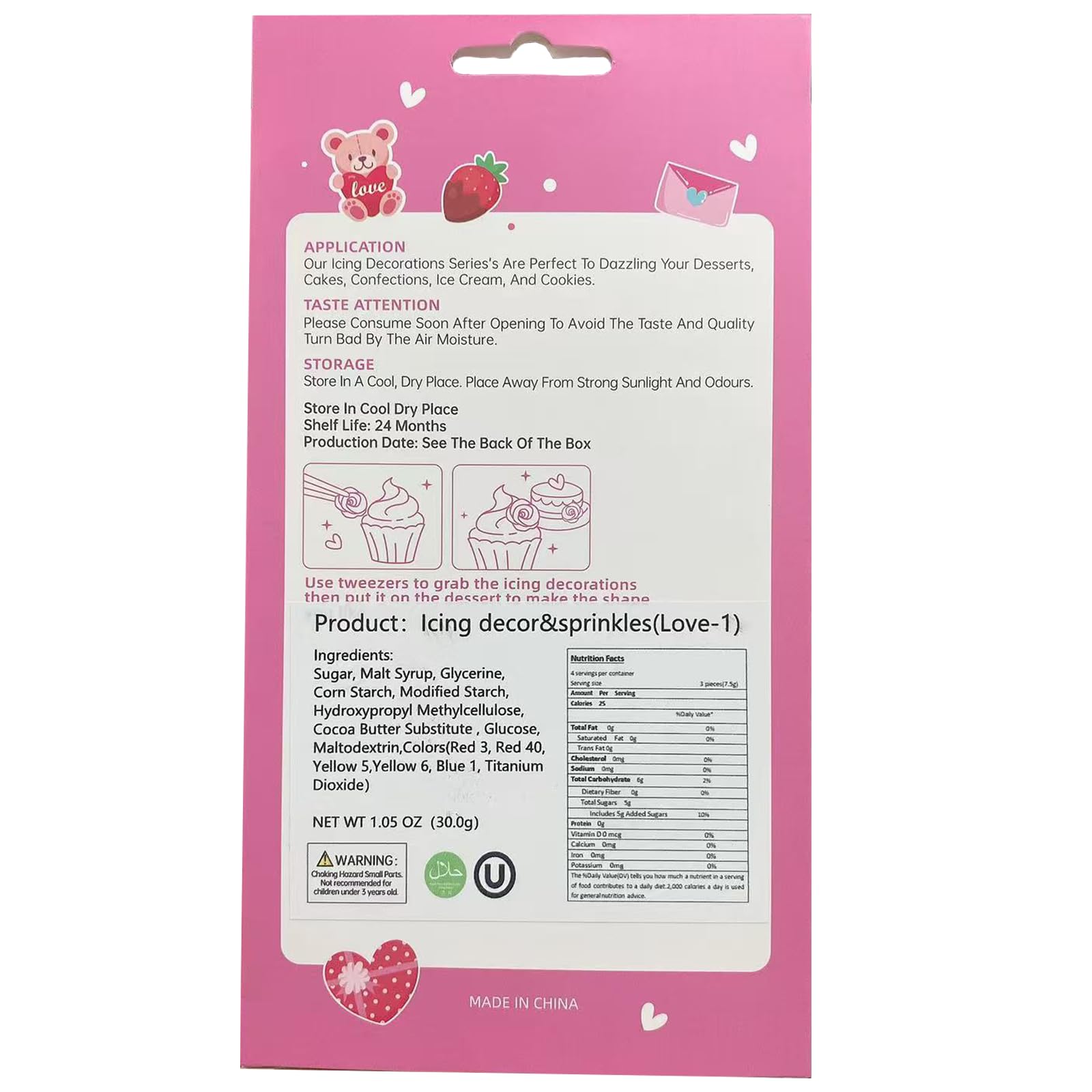 Q: What is the expiration date for the Sentovac Heart Sprinkles?A: You can find the production date and expiration date printed on the back of the box. To ensure quality and taste, it's best to use the sprinkles before the expiration date.