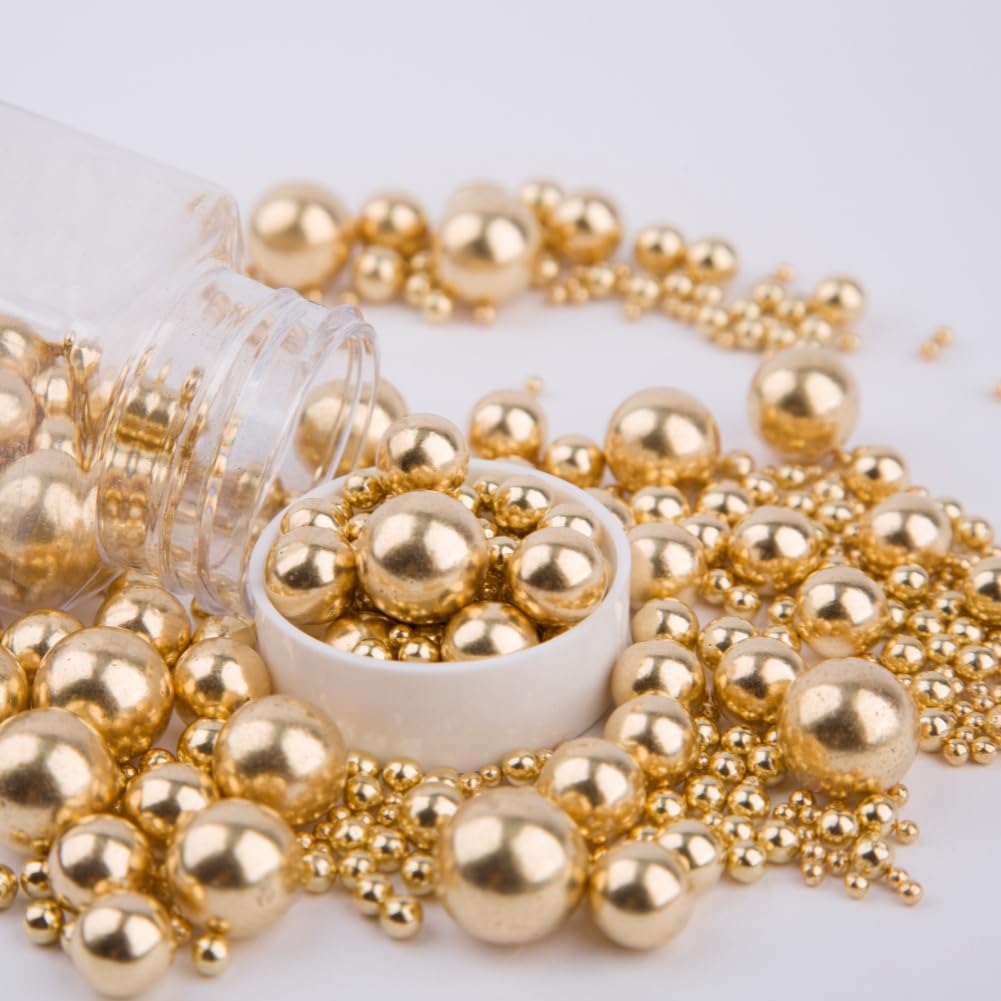 Q: Are Sentovac Bright Gold Pearl Sugar Sprinkles edible?A: No, these sprinkles are not edible and are intended for decorative purposes only.