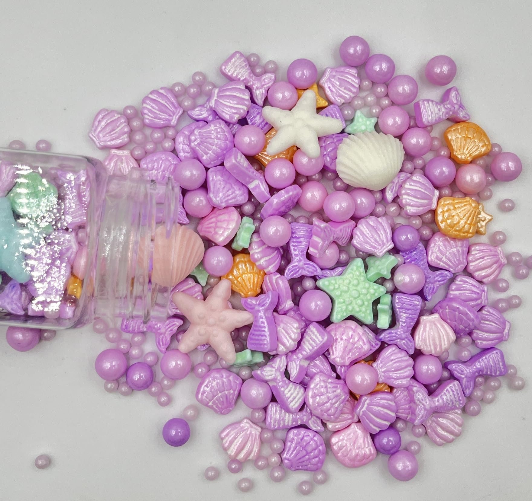 Q: What makes these sprinkles different from regular sprinkles?A: These sprinkles stand out due to their vibrant purple color, unique mermaid pearl design, and their health-conscious formulation, being free from gluten, nuts, eggs, and dairy.