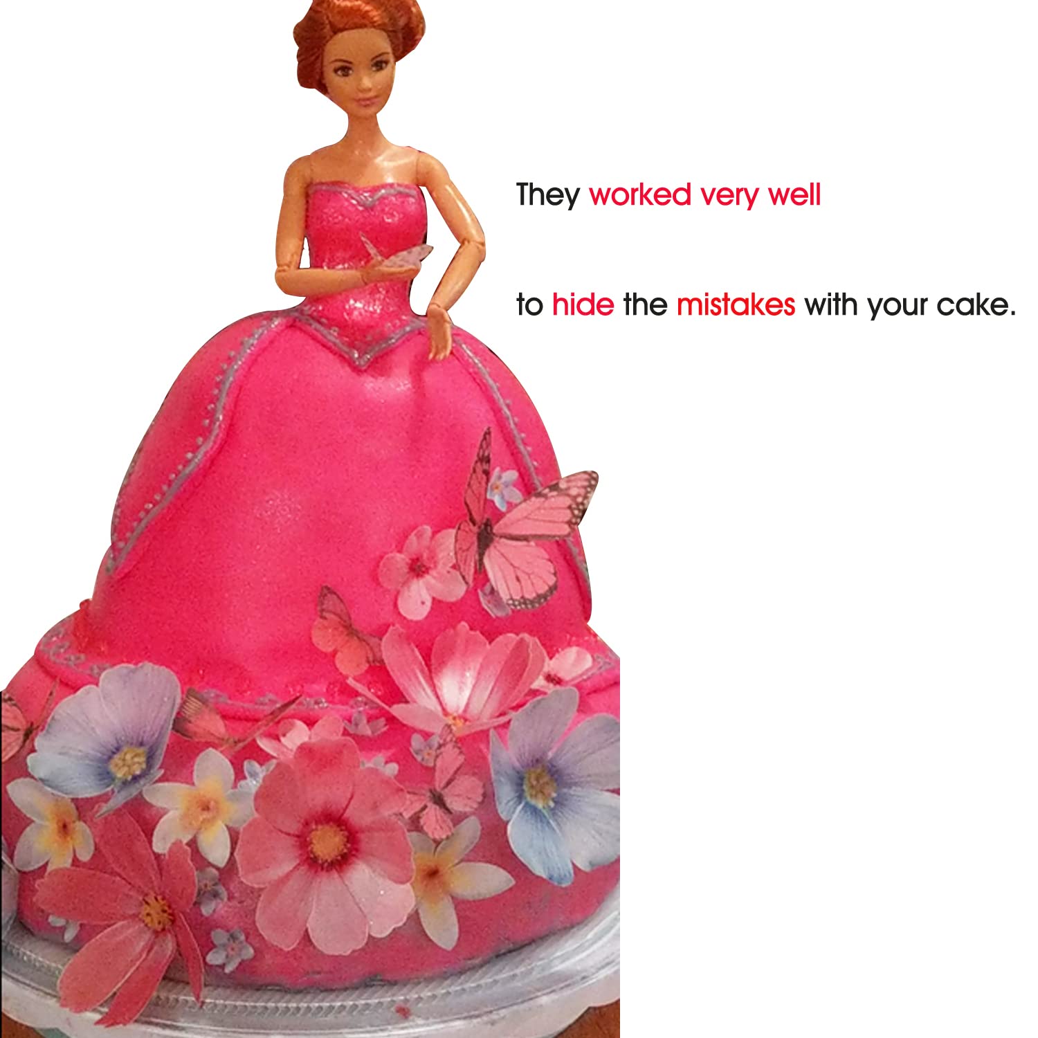 Q: How do I use the edible flower and butterfly toppers on my cakes?A: The toppers are pre-cut for your convenience. You can use them flat or gently fold them to create a 3D effect. Simply attach them to your cakes, biscuits, or cupcakes with a small amount of icing.