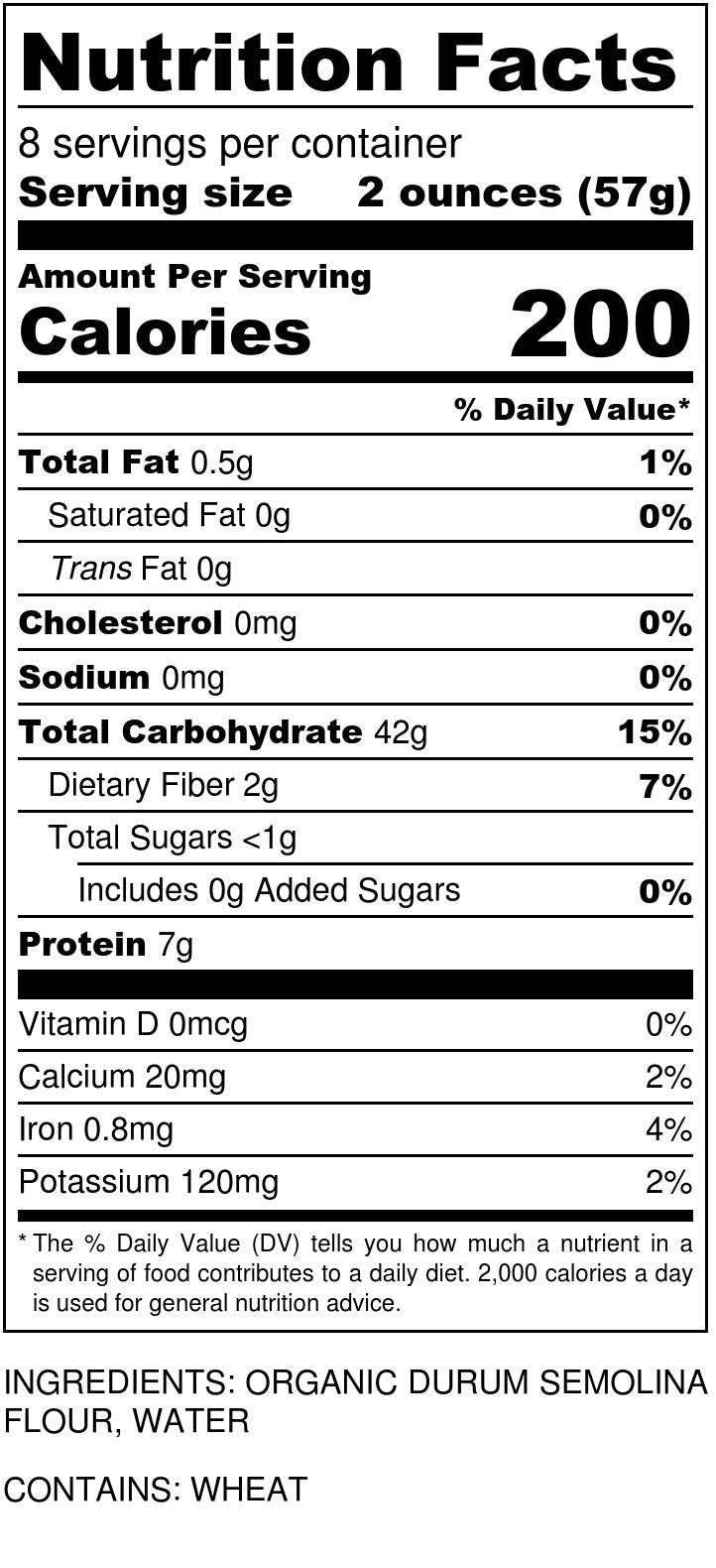 Q: What is Sfoglini Organic Durum Semolina Zucca made from?A: Sfoglini Organic Durum Semolina Zucca is made from organic durum semolina flour sourced from North Dakota, ensuring high quality and superior taste.
