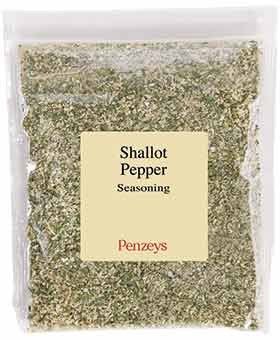Q: What are the key ingredients in Shallot Pepper Seasoning?A: Shallot Pepper Seasoning is hand-mixed from high-quality ingredients including coarse salt, Tellicherry black pepper, shallots, tarragon, and bay leaves, providing a rich and flavorful seasoning.