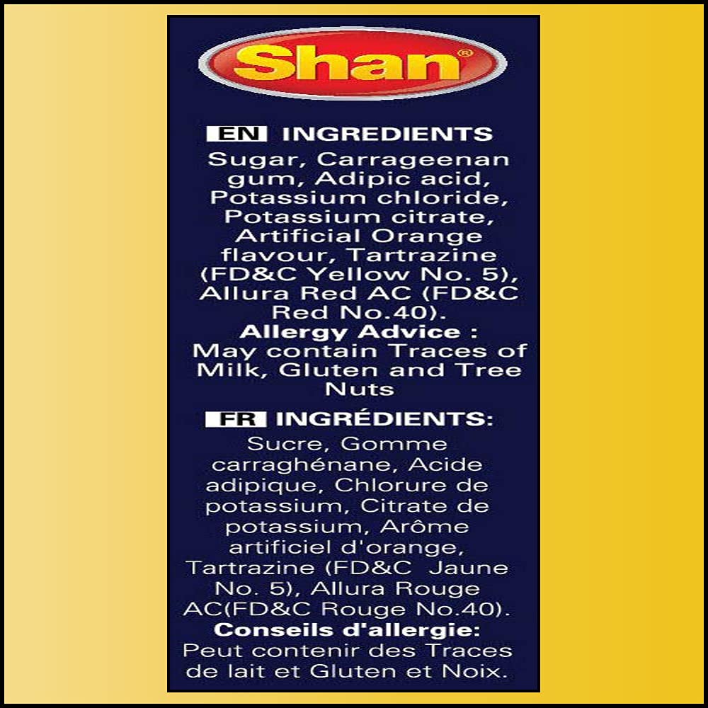 - Q: Are there any allergens in Shan Jelly Crystals? A: While Shan Jelly Crystals Orange do not list common allergens, it is important to check the packaging for specific allergen information, especially if you have dietary restrictions.