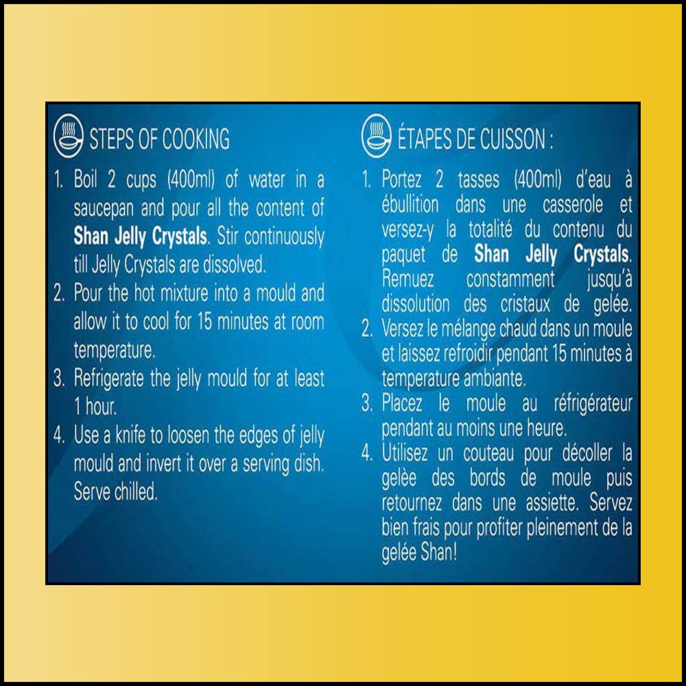 - Q: What are Shan Jelly Crystals Orange used for? A: Shan Jelly Crystals Orange are primarily used to make quick and easy desserts, specifically jello. They are suitable for creating a traditional dessert experience at home within minutes.