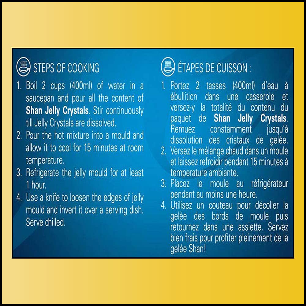 Description: Shan Foods Was A Small Company Established In 1981. Soon It Gained Popularity And Now We Have A Presence In 65 Countries Across 5 Continents.&Nbsp; All Our Products Are Carefully Packaged Under The Most Hygienic Conditions According To International Quality Standard.&Nbsp; All Products Of Shan Foods Are Iso 9001:2015. Shan Foods Is Committed To Making Your Life Easier In The Kitchen And At The Same Time Delighting Your Taste Buds. We Are The Pioneer Of Ready To Make Masala Packets. We Are Continuously Working Hard To Ensure You Can Serve Authentic Pakistani/Indian Food To Your Loved Ones. Each Recipe Is Tailored To Ensure A Delicious Taste Through Our Special Herbs Seasoning And Spices. Shans Traditional Desserts Range Offers Convenience By Allowing Our Consumers To Make Delicious Desserts In The Comfort Of Their Homes. Available In Distinct Variants, Shans Traditional Desserts Offer Something For Every Occasion.Shan Pineapple Jelly Is The Quick Easy To Make Dessert You Need To Fulfill The Sweet Craving.
