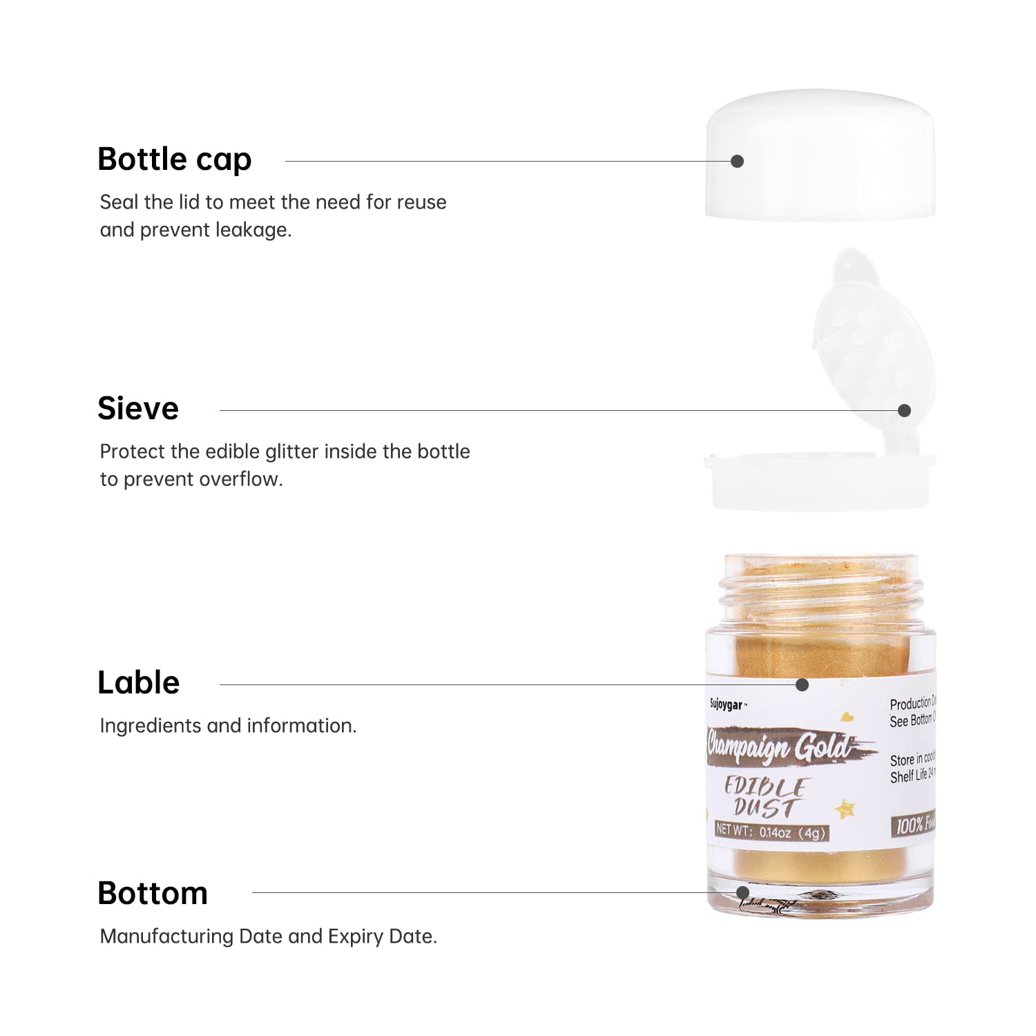 Q: Can I use this glitter for art projects as well?A: Absolutely! Shimmer Gold Edible Glitter can be used not only for food decoration but also for various art projects, allowing you to add a magical touch to your crafts.
