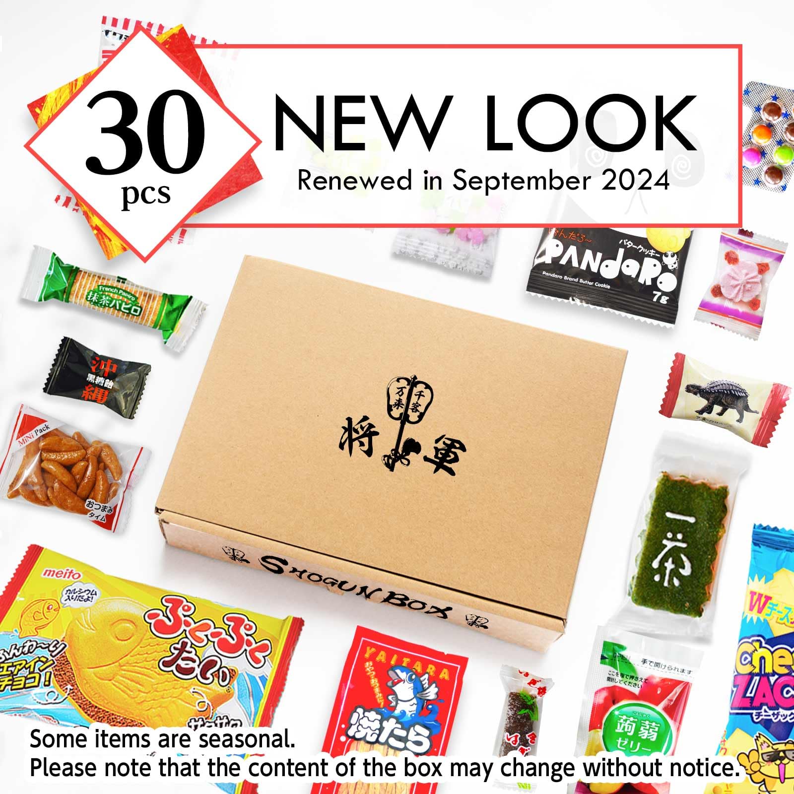 Q: What types of Japanese snacks are included in the SHOGUN CANDY Box?A: The SHOGUN CANDY Box contains a variety of 30 pieces of traditional Japanese snacks, including Ramune, chocolate, gum, gummies, jelly, Taiyaki chocolate, and chips.