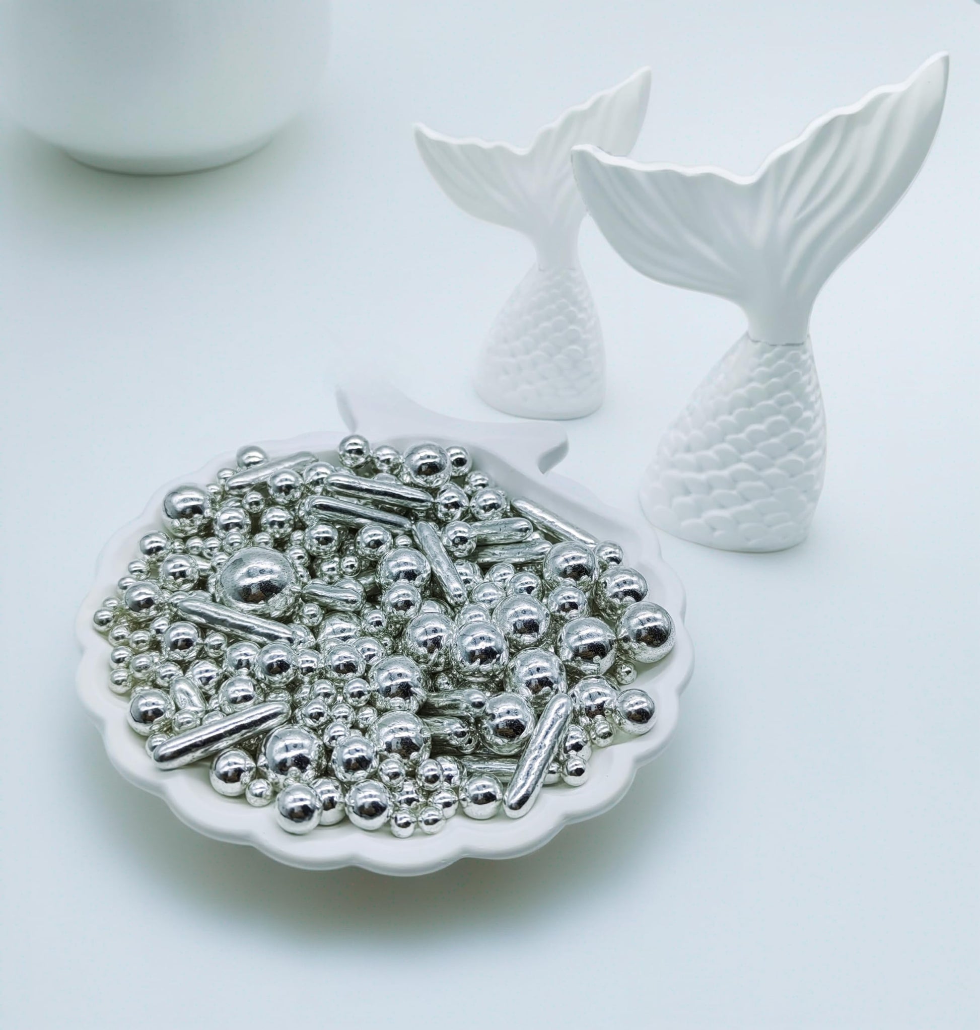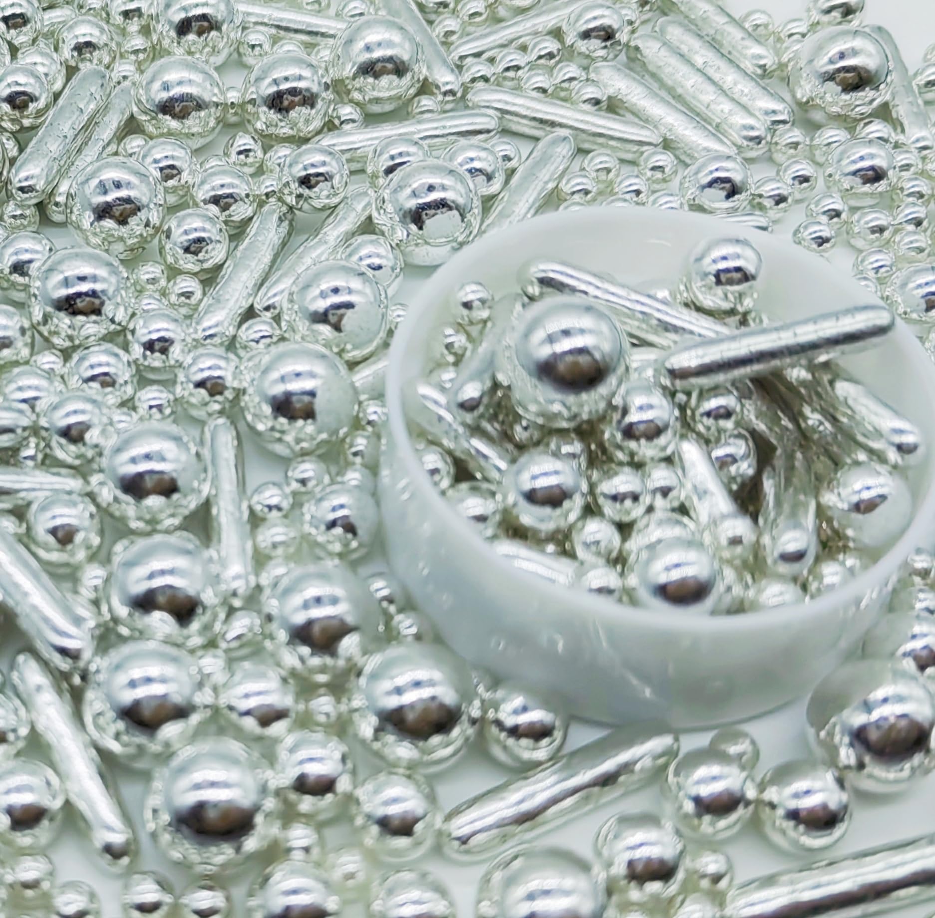 Q: Can I combine these sprinkles with other toppings?A: Absolutely! The silver candy pearls can be easily combined with other cake decorations and toppings to create unique and personalized designs for your baked goods.