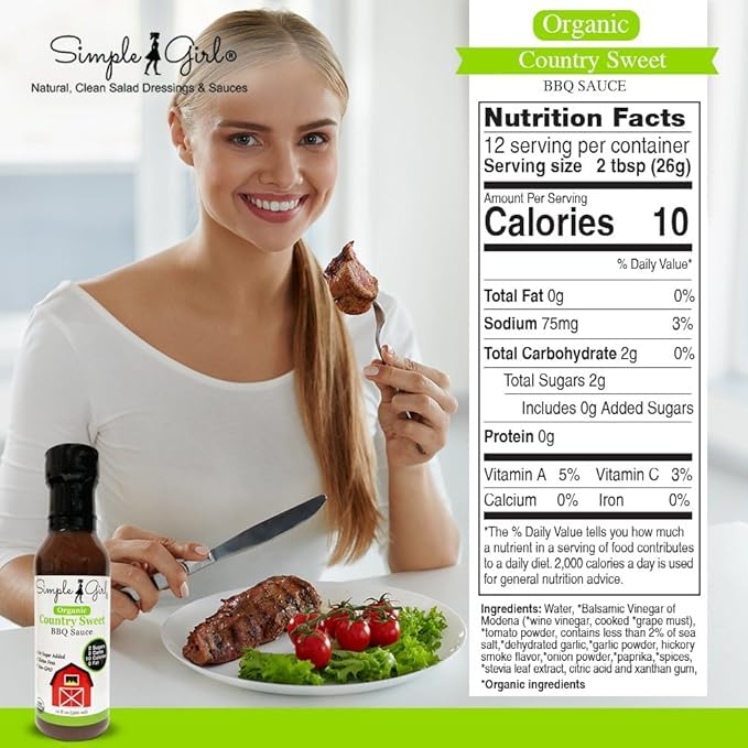 Q: What ingredients are used in Simple Girl BBQ sauces?A: Simple Girl BBQ sauces are made with high-quality organic ingredients, avoiding preservatives, artificial colors, and sweeteners like sucralose and aspartame. They use organic stevia leaf extract and monk fruit for sweetness.