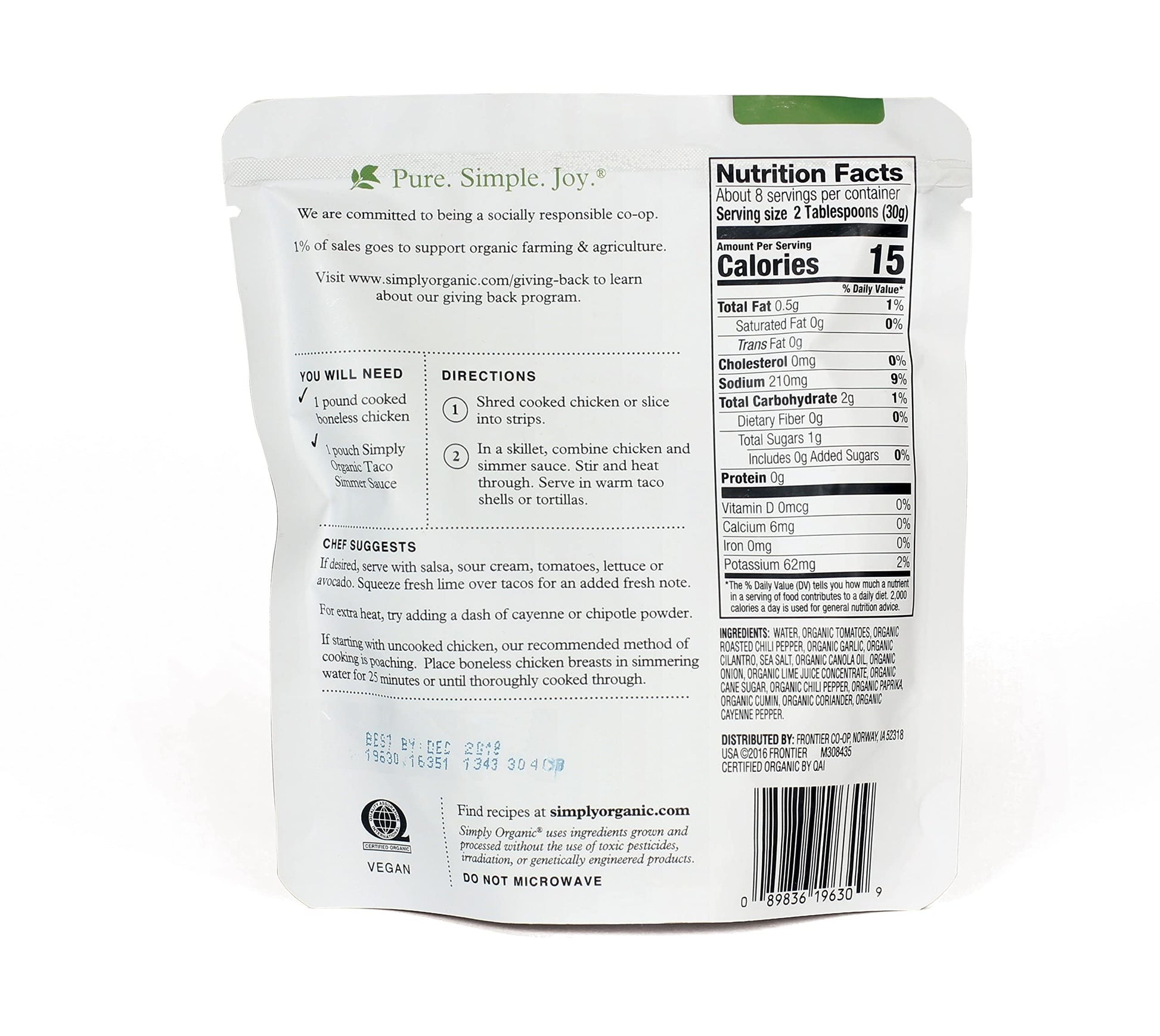 Simply Organic Mild Taco Simmer Sauce, Certified Organic | 8 oz | Pack of 6
