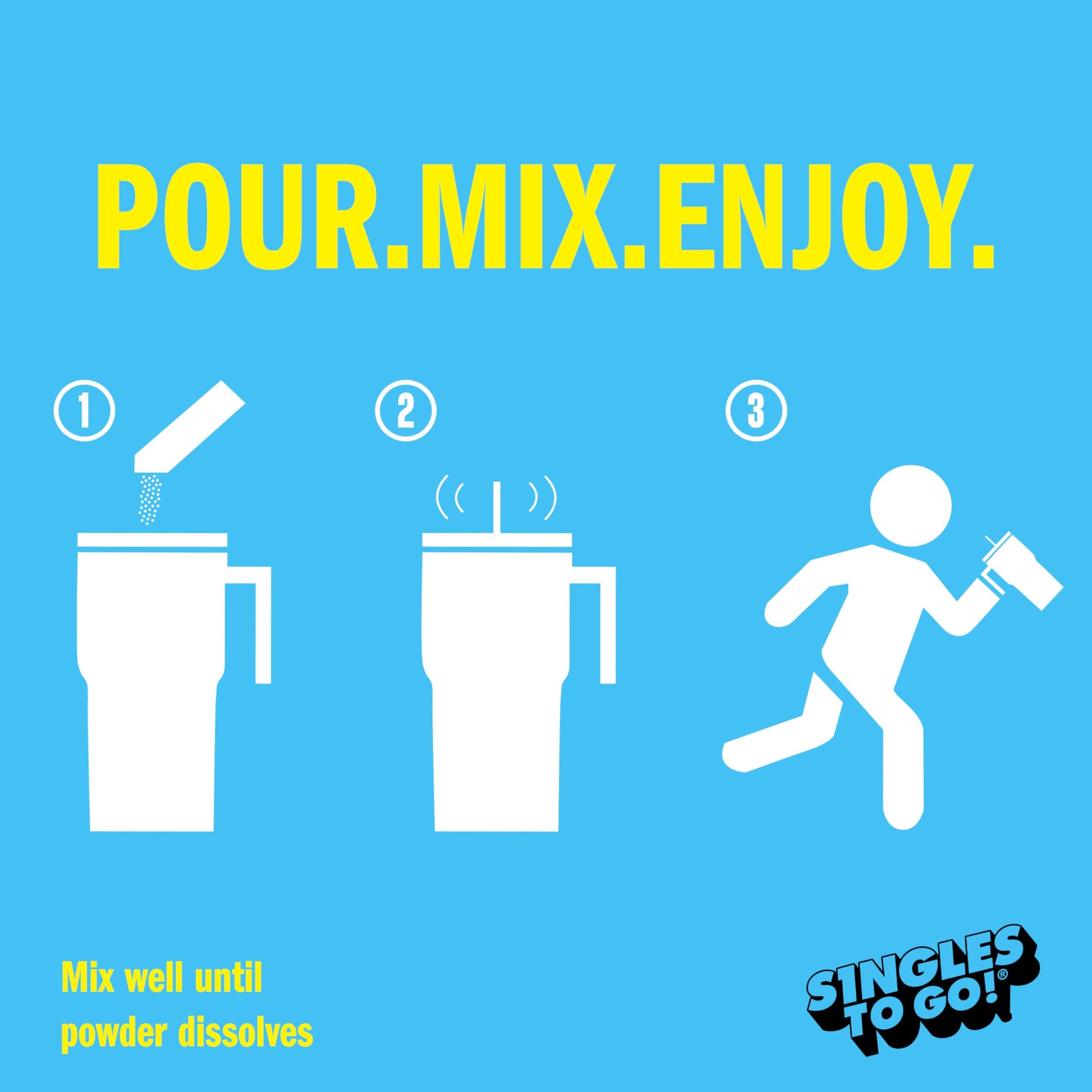 Now you can bring the taste of the rainbow with you everywhere you go Skittles Singles To Go drink mix sticks are bursting with fun fruit flavor that will add tasty excitement to your day. With 40 sticks included, youll get a taste of 4 different fruity flavors including Strawberry, Orange, Green Apple, and Grape. They are low-calorie water enhancers that have zero sugar, so you can feel great about sharing them with the whole family. To experience the exciting flavor, take a sip from a full bottle of water to make room for the powder. Pour one stick into a 16.9 fl. oz. bottle or large glass of water, shake until well mixed, and enjoy.