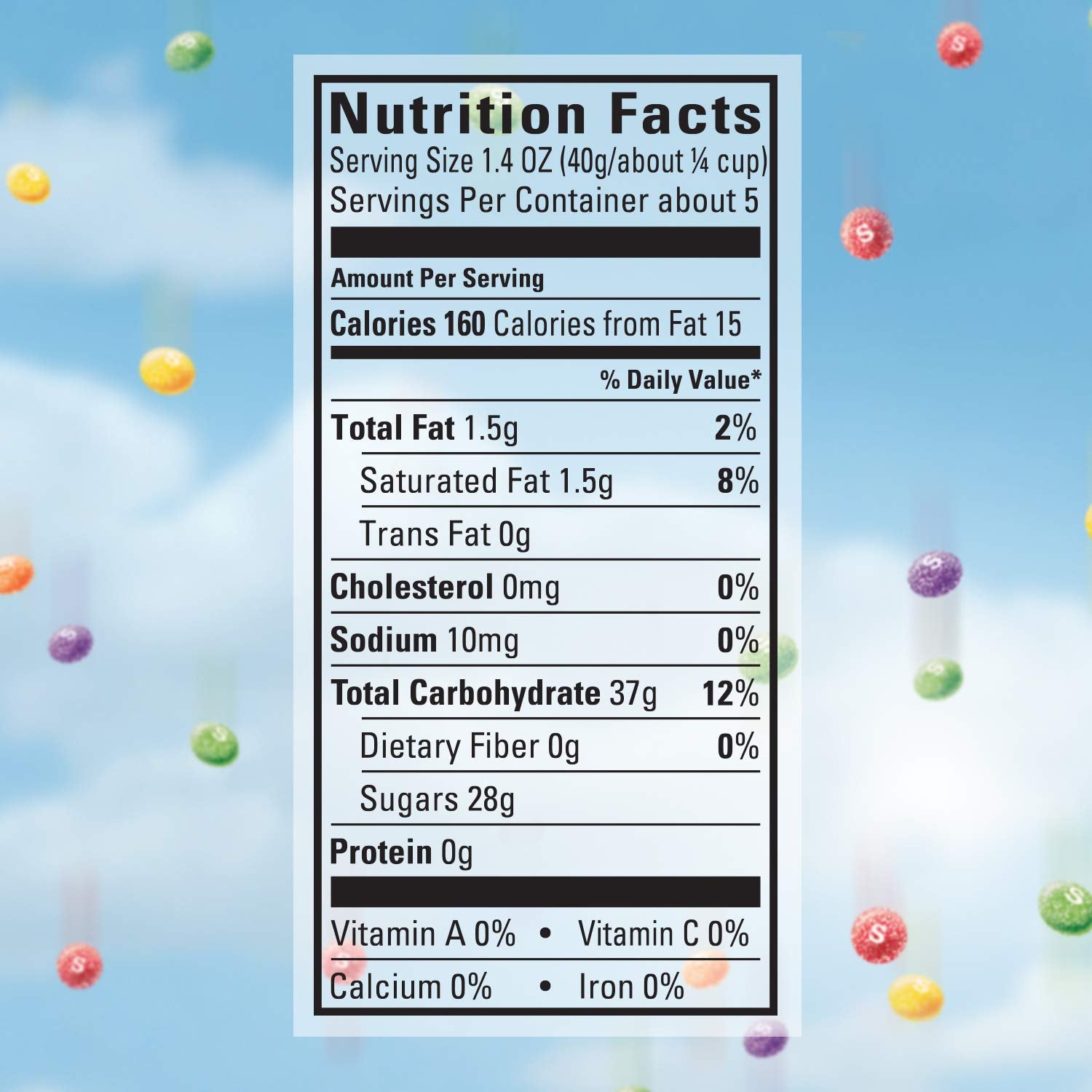 Q: What is the size of the Skittles Sour Candy bag?A: The Skittles Sour Candy is available in a 5.7-ounce bag, providing plenty of fruity, chewy candy to share or enjoy on your own.