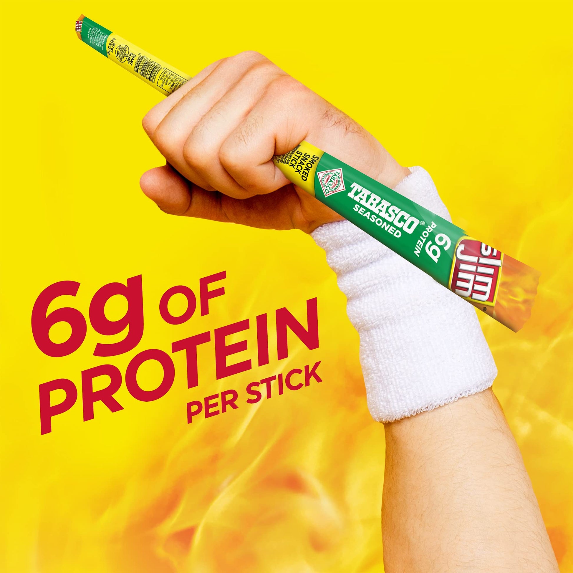 Key Features:- Includes one 24-count box of 0.97-ounce Slim Jim Tabasco Seasoned Giant Size Smoked Meat Sticks.
