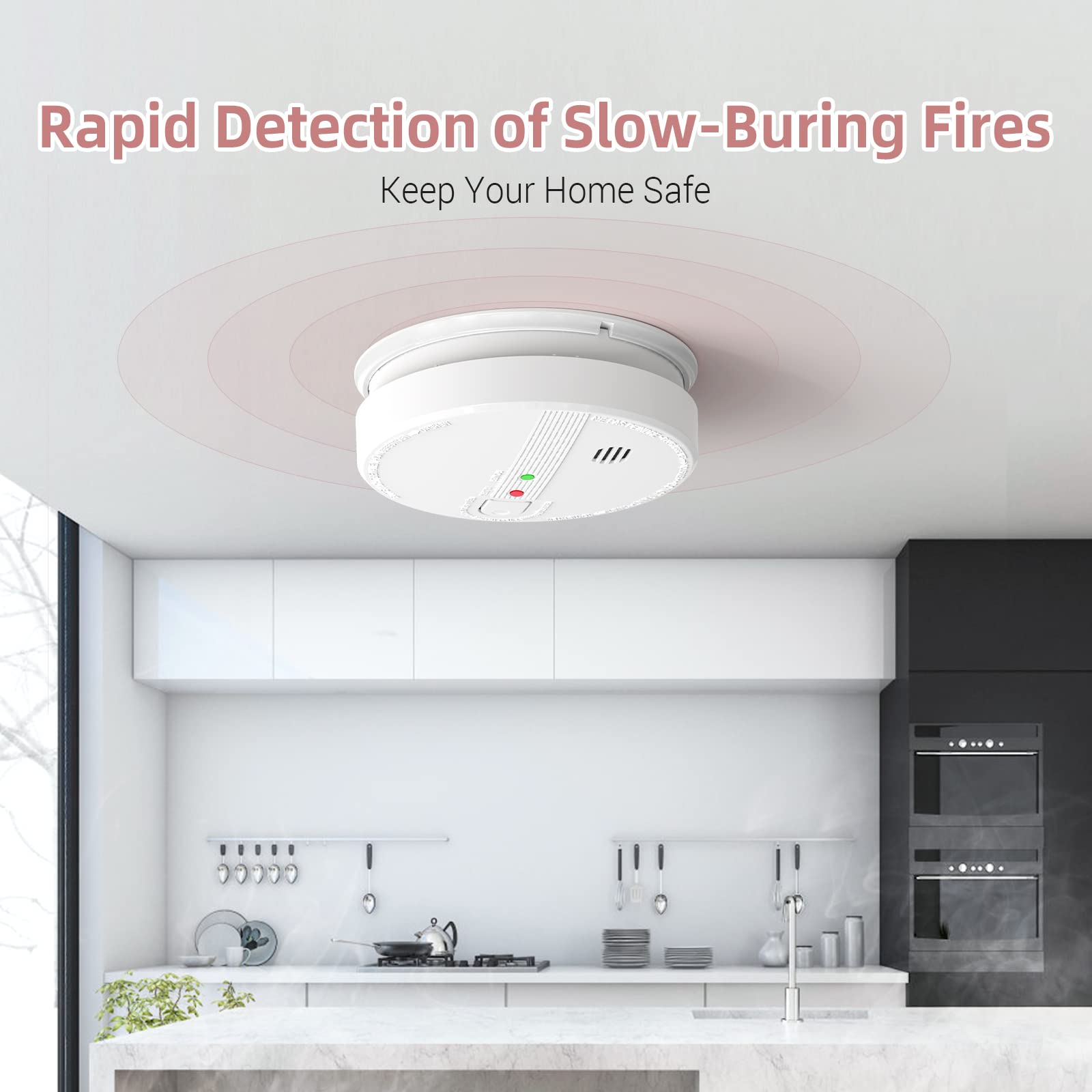 Q: What type of battery does this smoke detector use?A: This smoke detector features a replaceable 9V battery backup. This ensures that even during power outages, the alarms remain functional, providing continuous protection.