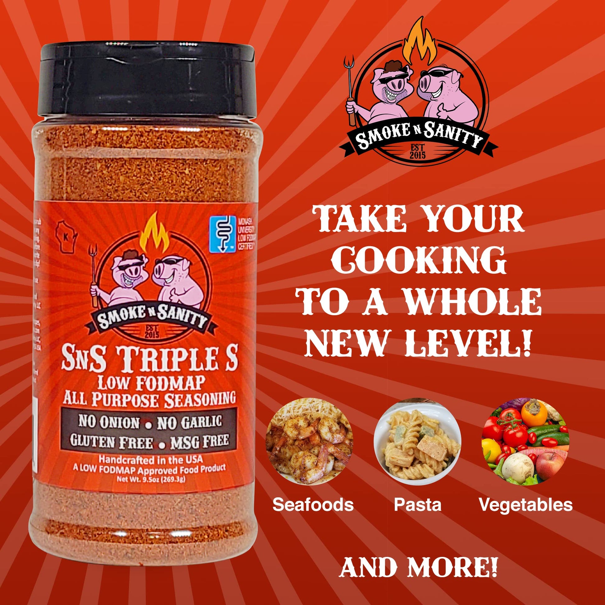 Introducing the SnS Triple S Low FODMAP All Purpose Seasoning by Smoke n Sanity, LLC, a specially crafted seasoning designed to enhance the flavors of your meals while adhering to a low FODMAP diet. This versatile seasoning blend is perfect for anyone looking to add a balanced burst of flavor to their cooking without compromising digestive comfort.