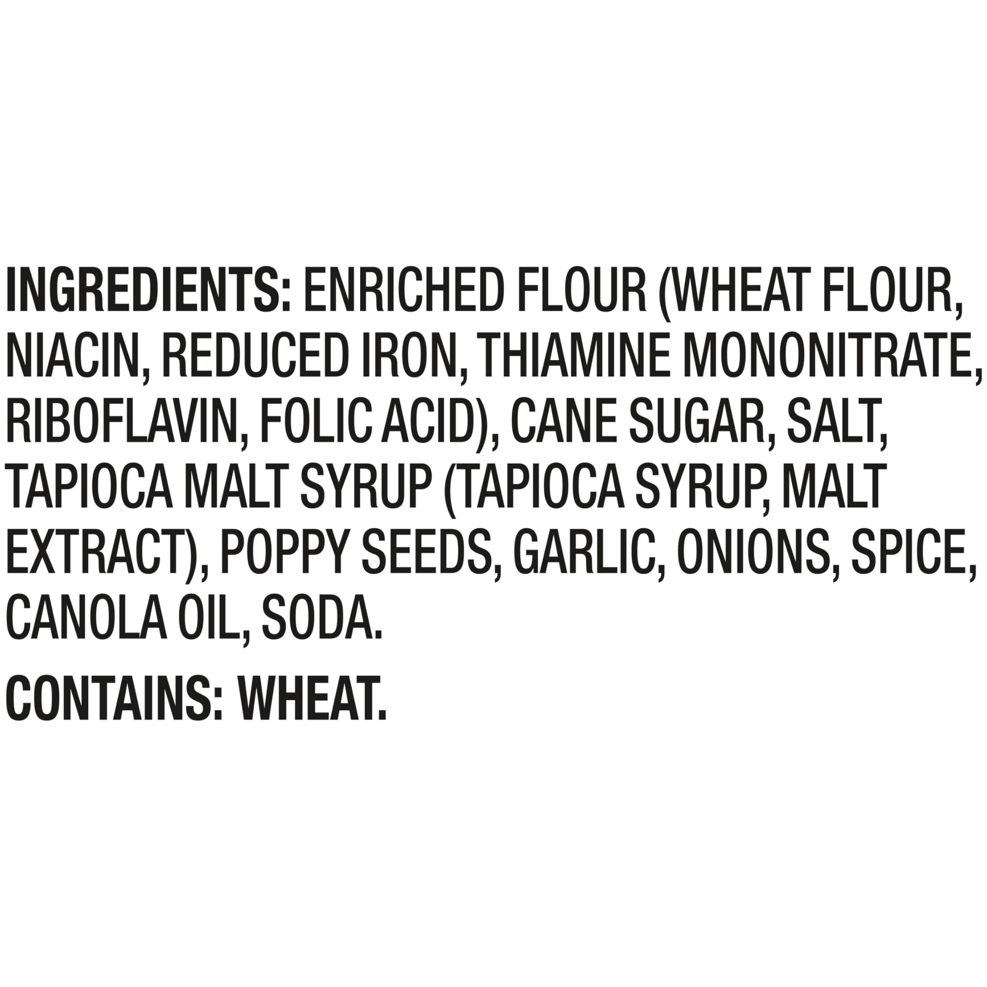 Q: What are Snack Factory Everything Pretzel Crisps made of?A: Snack Factory Everything Pretzel Crisps are made with quality ingredients, including poppy seeds, onion, garlic, and salt. They are also Non-GMO Project Verified.