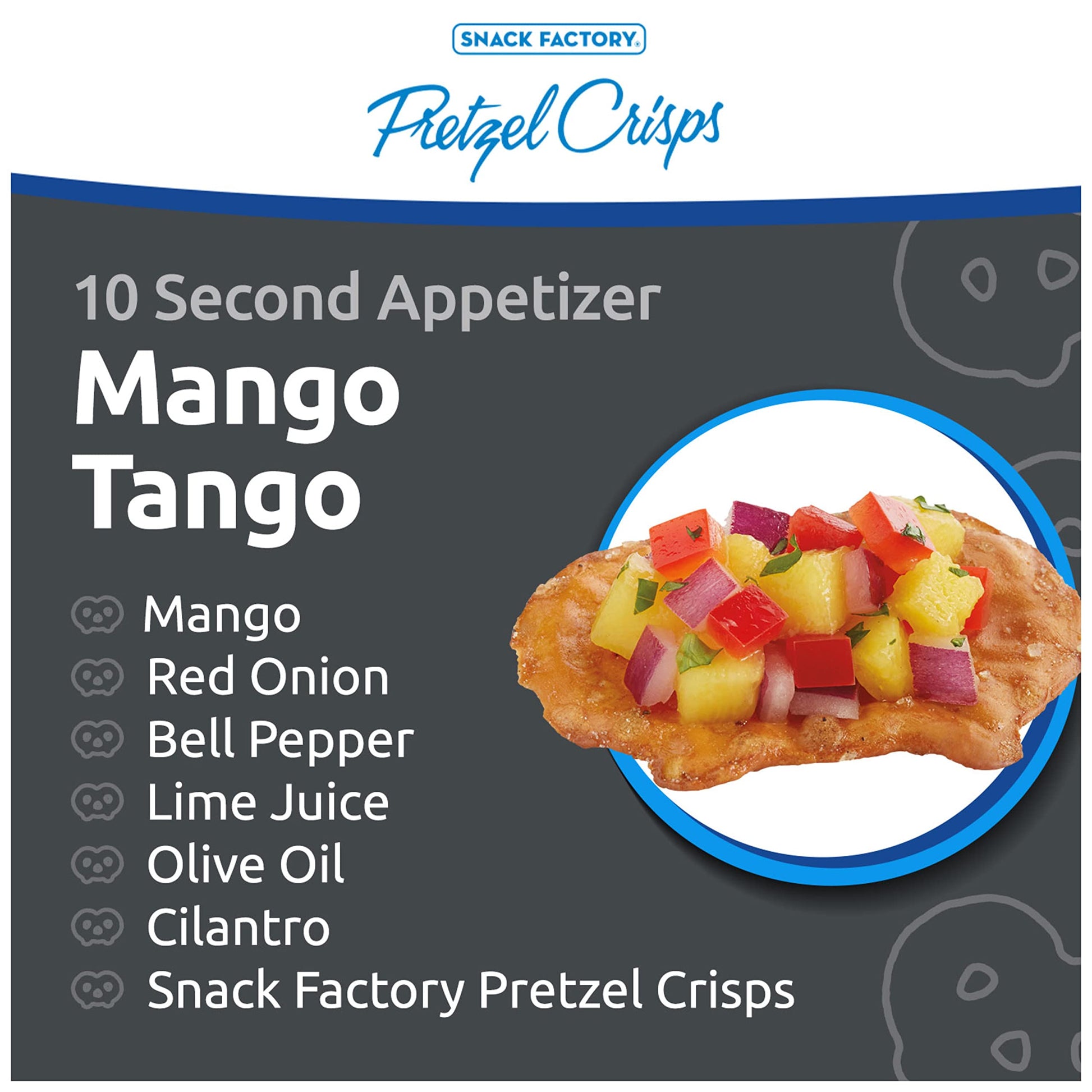 Q: What can I pair with Snack Factory Pretzel Crisps?A: Snack Factory Pretzel Crisps are incredibly versatile and pair well with a variety of dips such as hummus, cheese spreads, or can be enjoyed on their own for a delicious snack.