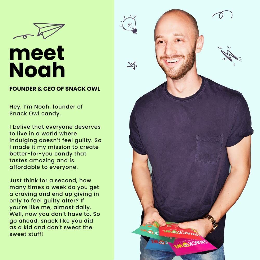 Q: What ingredients are used in Snack Owl Vegan Sour Gummy Candy?A: Snack Owl Vegan Sour Gummy Candy is made using plant-based ingredients and sweetened with Allulose, a healthier alternative that comes from fruits like figs. This makes the gummies not only delicious but also a better-for-you option.