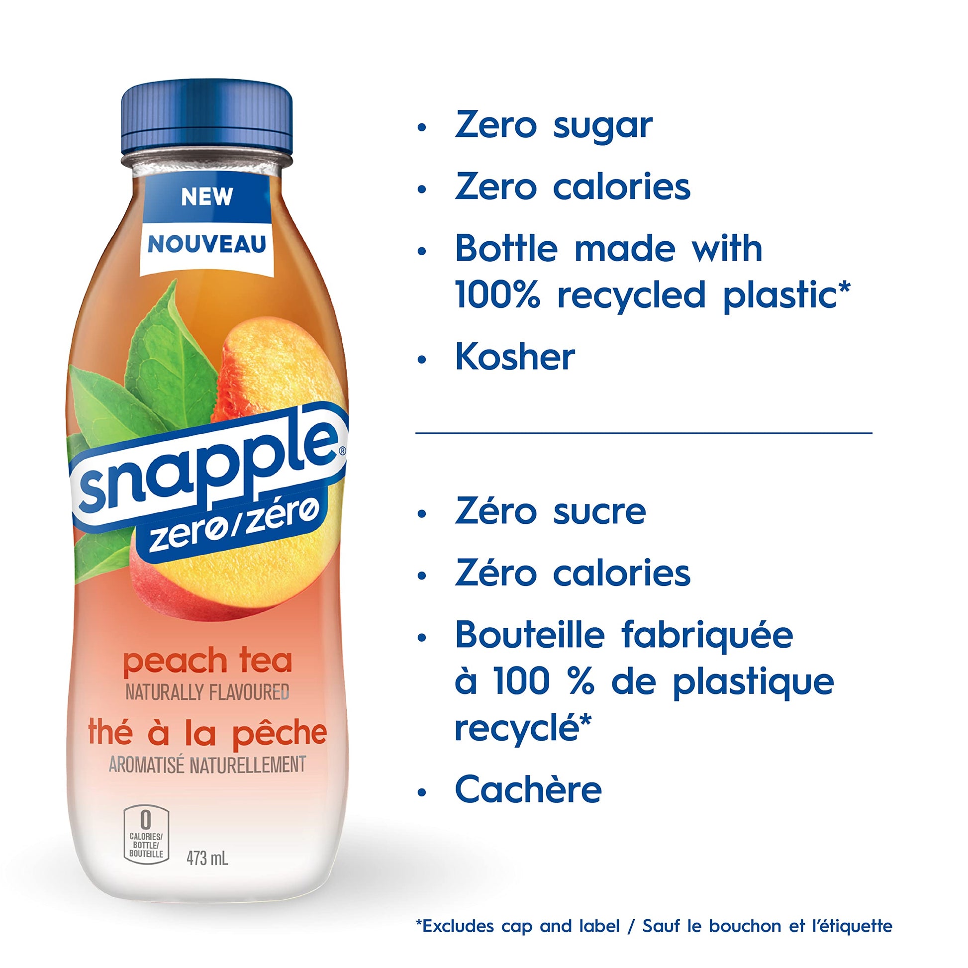 Snapple Bottled Peach Flavored Iced Tea. To Peach Their Own. Smooth Snapple Tea, Perfect Peach Flavor. We Made It Just For You From The Best Stuff On Earth. Delicious And Refreshing Peach Flavored Tea. The New 16 Oz Plastic Bottle Has A Brand New Design. Great Peach Flavor Made From The Best Stuff On Earth.