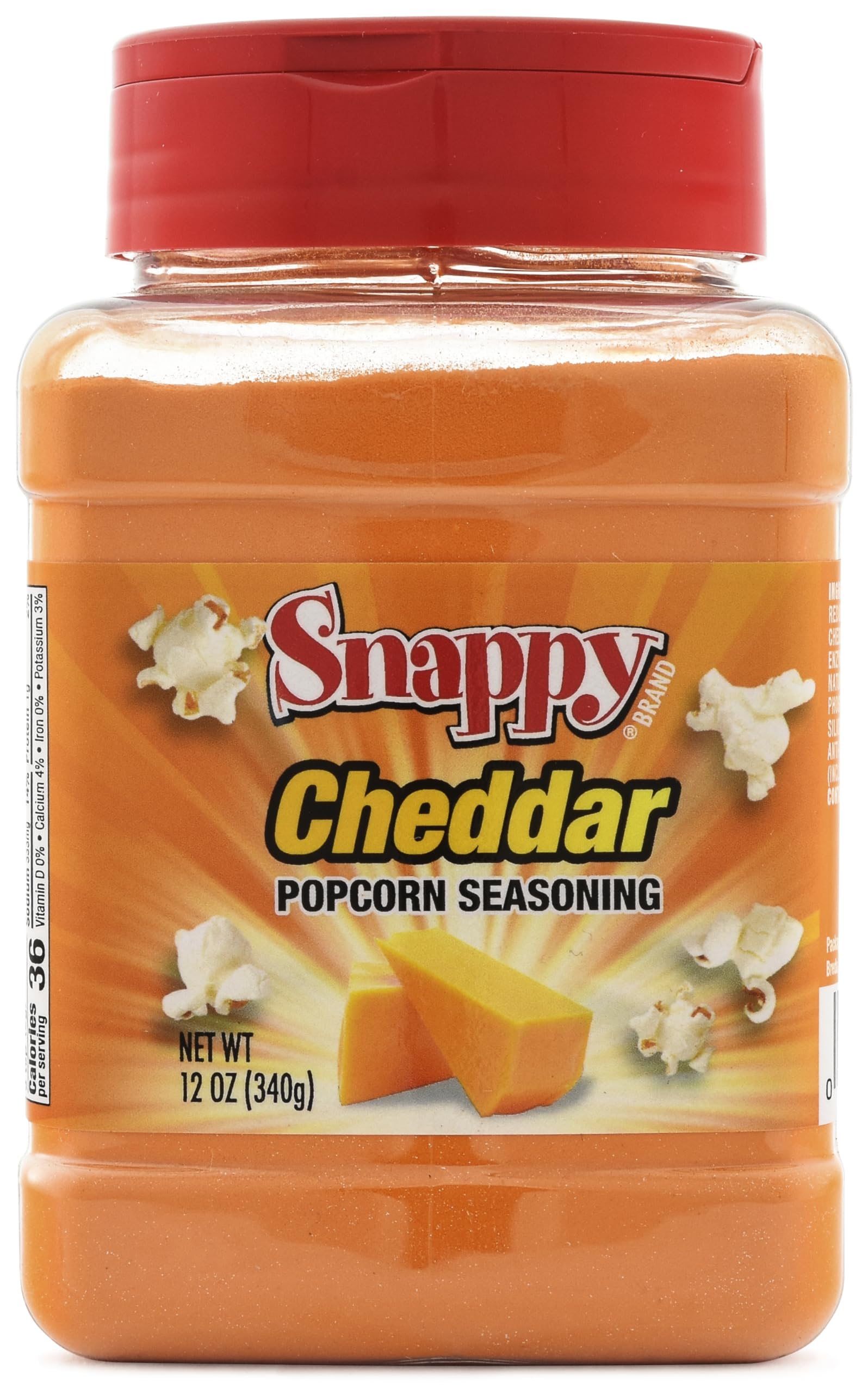 Q: Is Snappy Cheddar Cheese Popcorn Seasoning suitable for dietary restrictions?A: While Snappy Cheddar Cheese Popcorn Seasoning is a delicious addition to many dishes, it's important to check the ingredient list for any specific dietary concerns, especially if you have allergies or dietary restrictions.