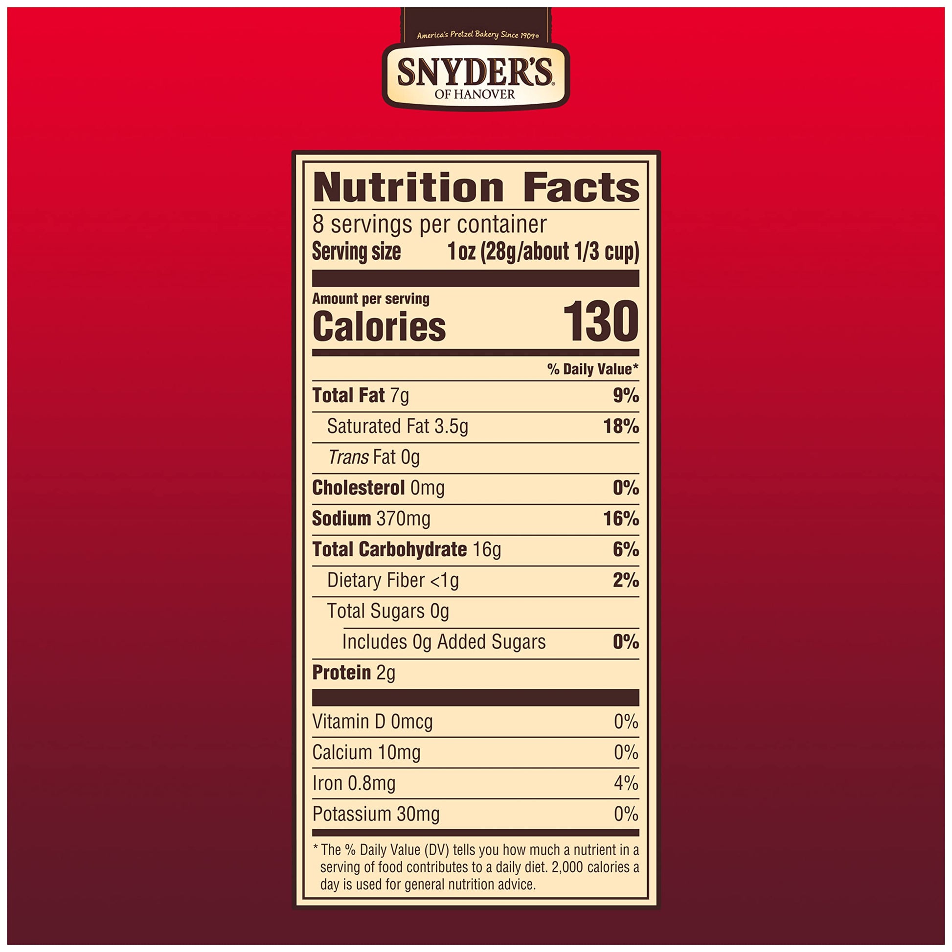 - Q: What is the size of the packaging for Snyder's Pretzel Pieces? A: Snyder's of Hanover Hot Buffalo Wing Pretzel Pieces come in an 8-ounce bag, which is perfect for sharing with friends or keeping on hand for personal cravings. This convenient size allows for easy transport and storage.