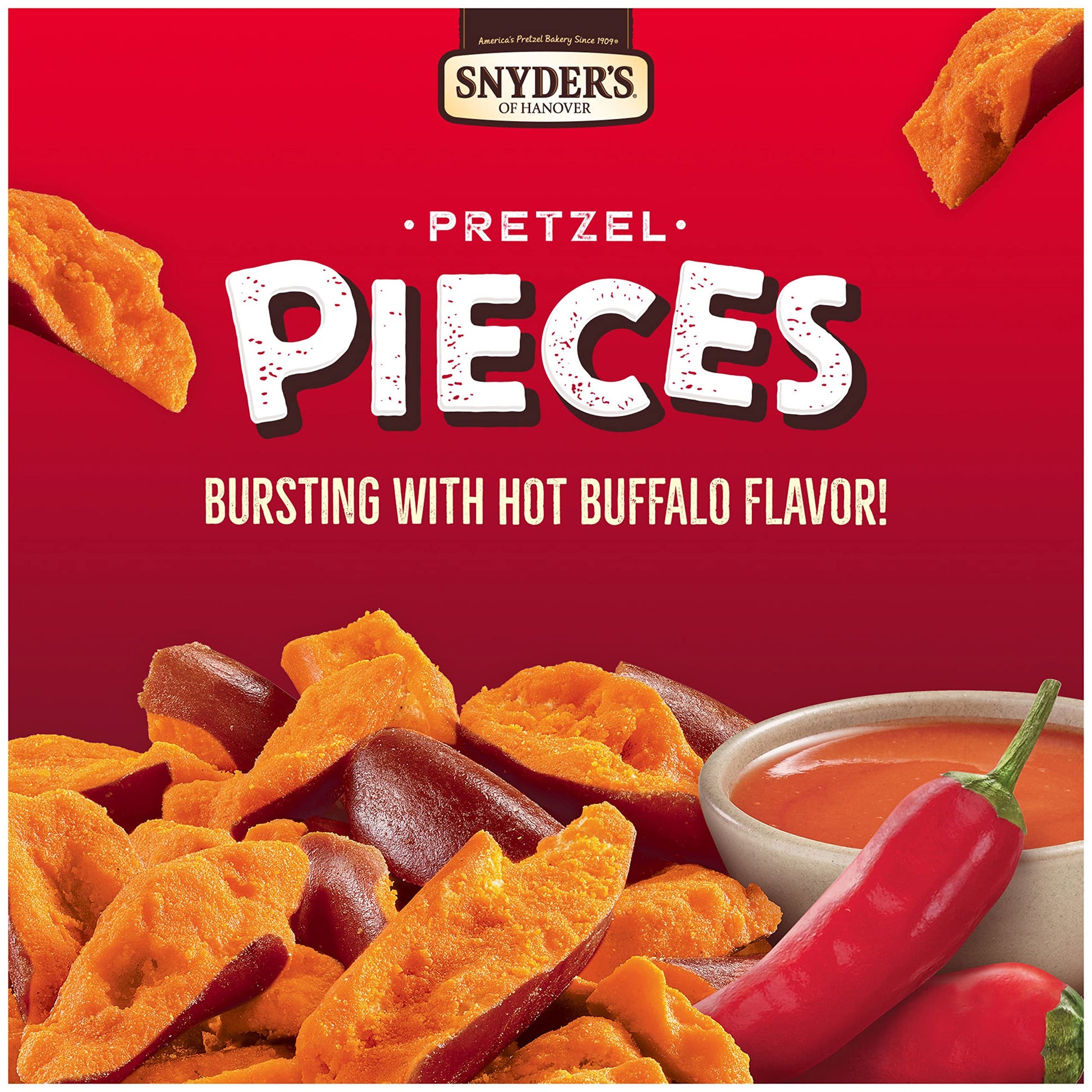 - Q: What is the best way to enjoy Snyder's Pretzel Pieces? A: Snyder's Hot Buffalo Wing Pretzel Pieces are ideal for various occasions. They make a great snack for game day, a crunchy addition to lunch, or a shareable treat at gatherings with friends. Enjoy them straight from the bag or pair them with dips for an enhanced snacking experience.