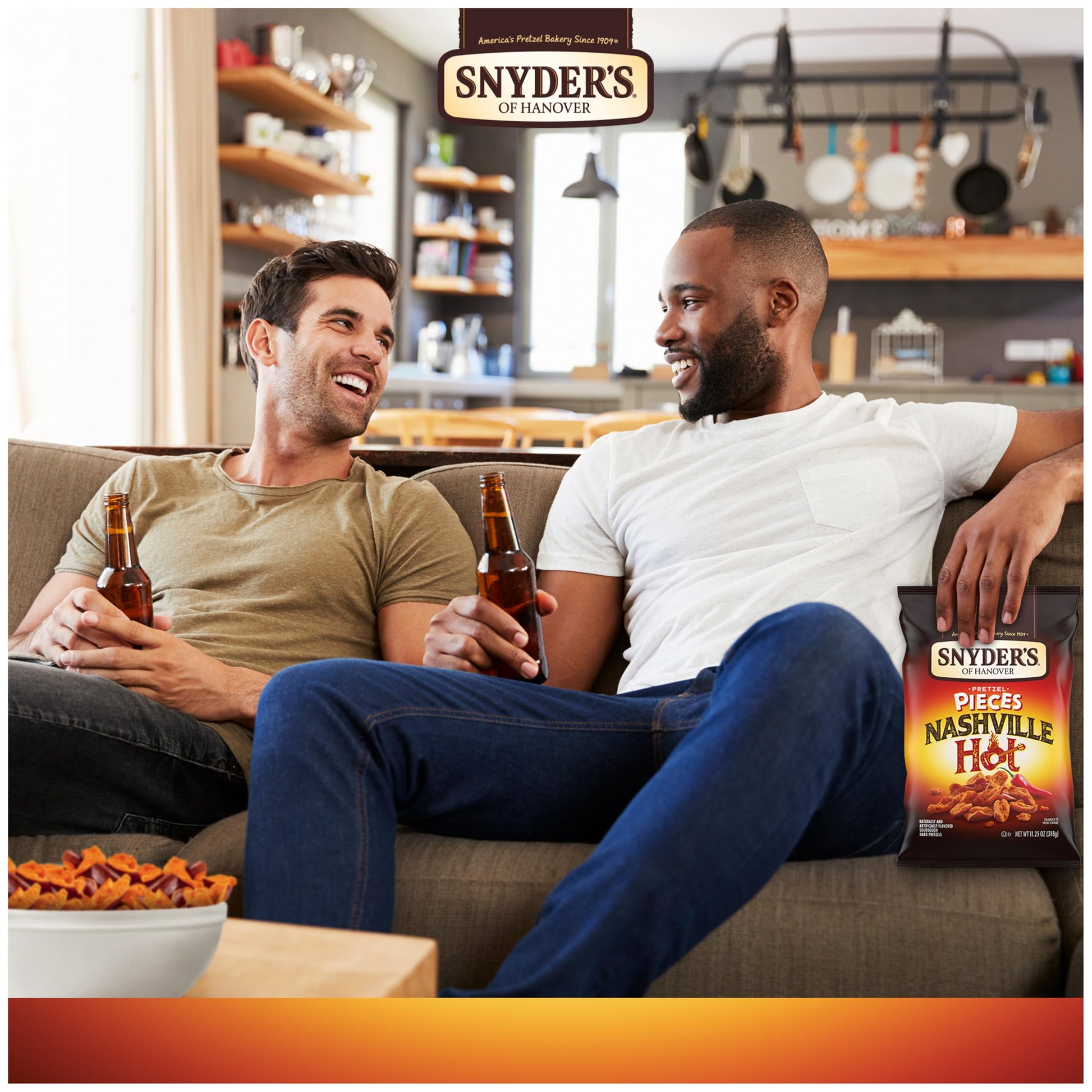 Snyder'S Of Hanover Nashville Hot Pretzel Pieces Are Bursting With Big Flavor! Nashville Hot Pieces Combines The Spicy, Savory And Tangy Flavor Of Nashville Hot Sauce And A Hint Of Pickle With The Signature Crunch Of Snyder'S Pretzels. You'Ll Love The Crunch, Heat, And Hearty Satisfaction Found In Every Bite Of These Snyder'S Pretzel Pieces. Enjoy These Crunchy Pretzel Pieces As A Lunch Snack Or While Watching Your Favorite Sports Game. Snyder'S Of Hanover Has Been America'S Pretzel Bakery Since 1909 And Our Pretzels Give You That Delicious Crunch For The Perfect Snack! Made In A Facility That Does Not Process Peanuts, Snyder'S Pretzels Are Made From Select Ingredients, Kneaded, And Oven-Baked To Seal In All The Flavor. Each 11.25-Oz Bag Of Nashville Hot Pieces Contains Roughly 11 Servings, Making Them Perfect For Sharing.