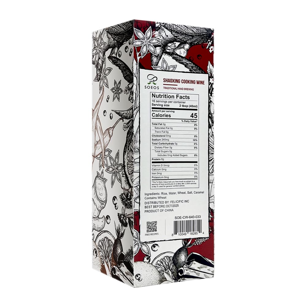 Whether you are a seasoned chef or a culinary novice, Soeos Shaoxing Cooking Wine is designed to enhance your cooking experience. Its authentic flavor profile makes it an indispensable ingredient for anyone looking to create delicious Asian-inspired dishes. Embrace the art of cooking with Soeos and bring the taste of traditional Chinese cuisine to your home kitchen.