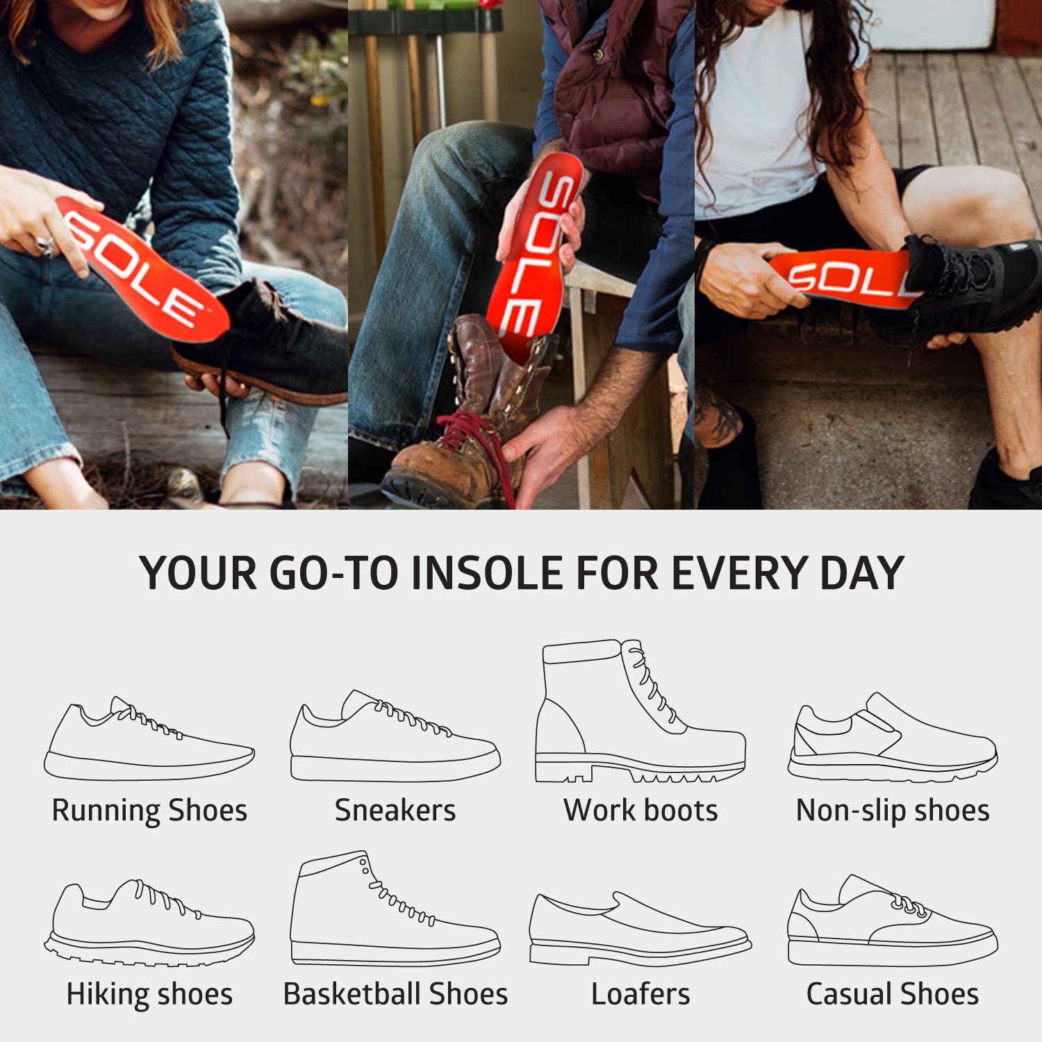 - Q: Can these insoles help with high arches or flat feet? A: Yes, the SOLE Active Medium insoles are suitable for both high arches and flat feet. They are custom heat moldable, allowing individuals with low arches to achieve a personalized fit, while those with high arches can benefit from the support straight out of the box.