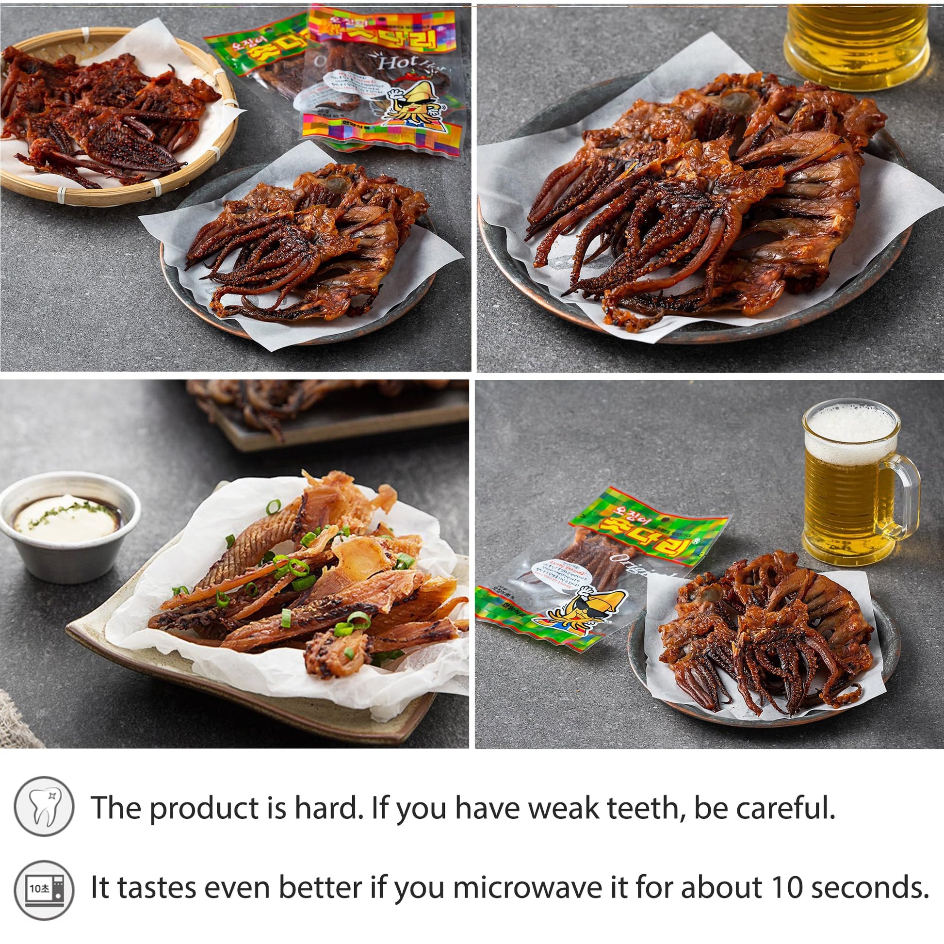 Q: Can I pair Sookwang Dried Squid with other foods?A: Absolutely! Sookwang Dried Squid can be enjoyed on its own or paired with red pepper paste for a spicy kick, adding a traditional Korean flavor to your snack.