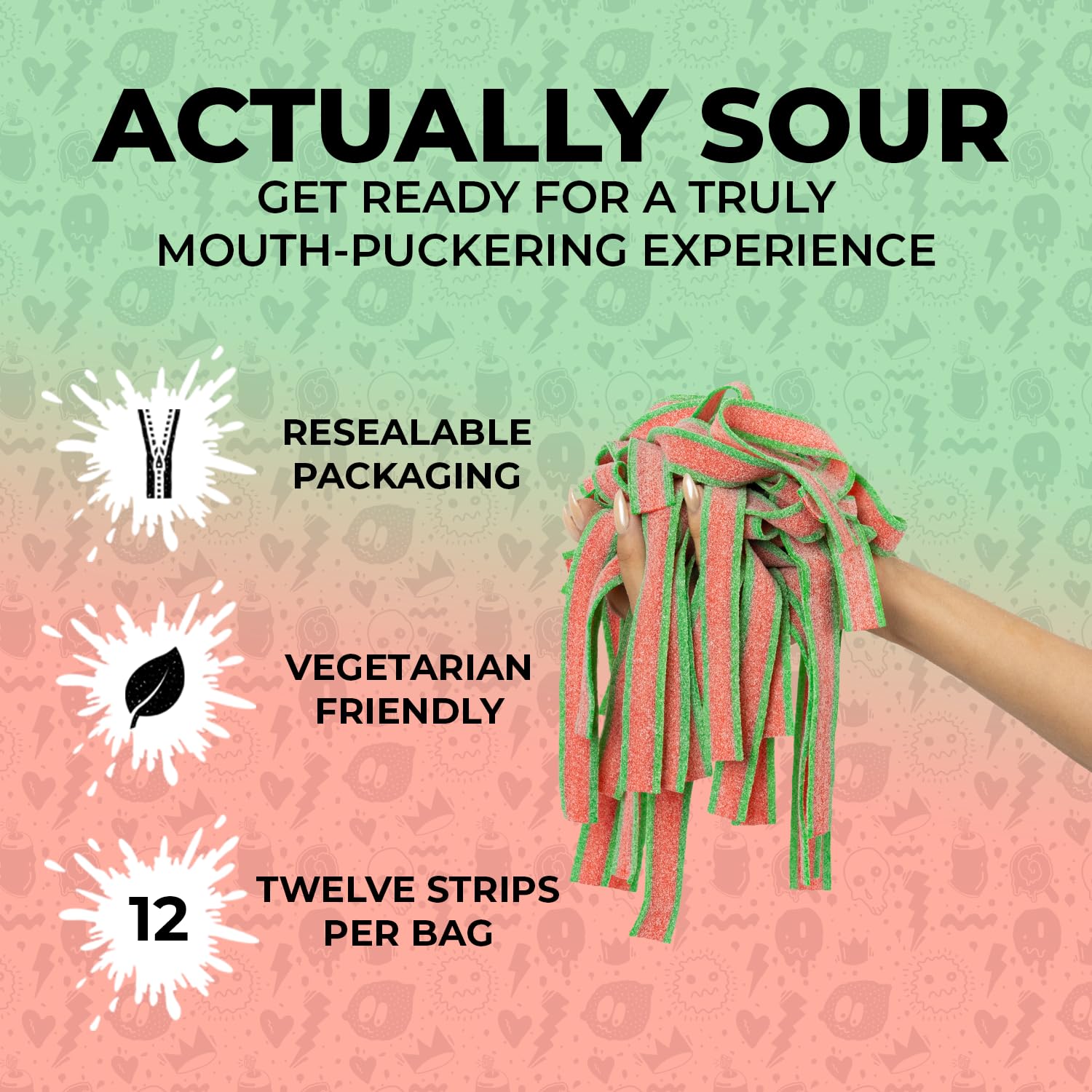 Get Ready For An Extreme Experience That Will Make Your Mouth Water And Your Eyes Close In Sour Delight With Watermelon Sour Strips. These Delicious Sour Snacks Come In A 3 Pack (12-Piece Each) Resealable Bag In Case Our Candy Is Too Sour For You (It Will Be, But You Will Still Eat Them All). They'Re Vegetarian, So You Can Tell All Your Friends Just How Awesome You Are For Eating Sour Strips, And Their Flavor Is Unparalleled. Are You Ready To Try Them Yet? *Contains Wheat; Manufactured In A Facility That Also Processes Beeswax