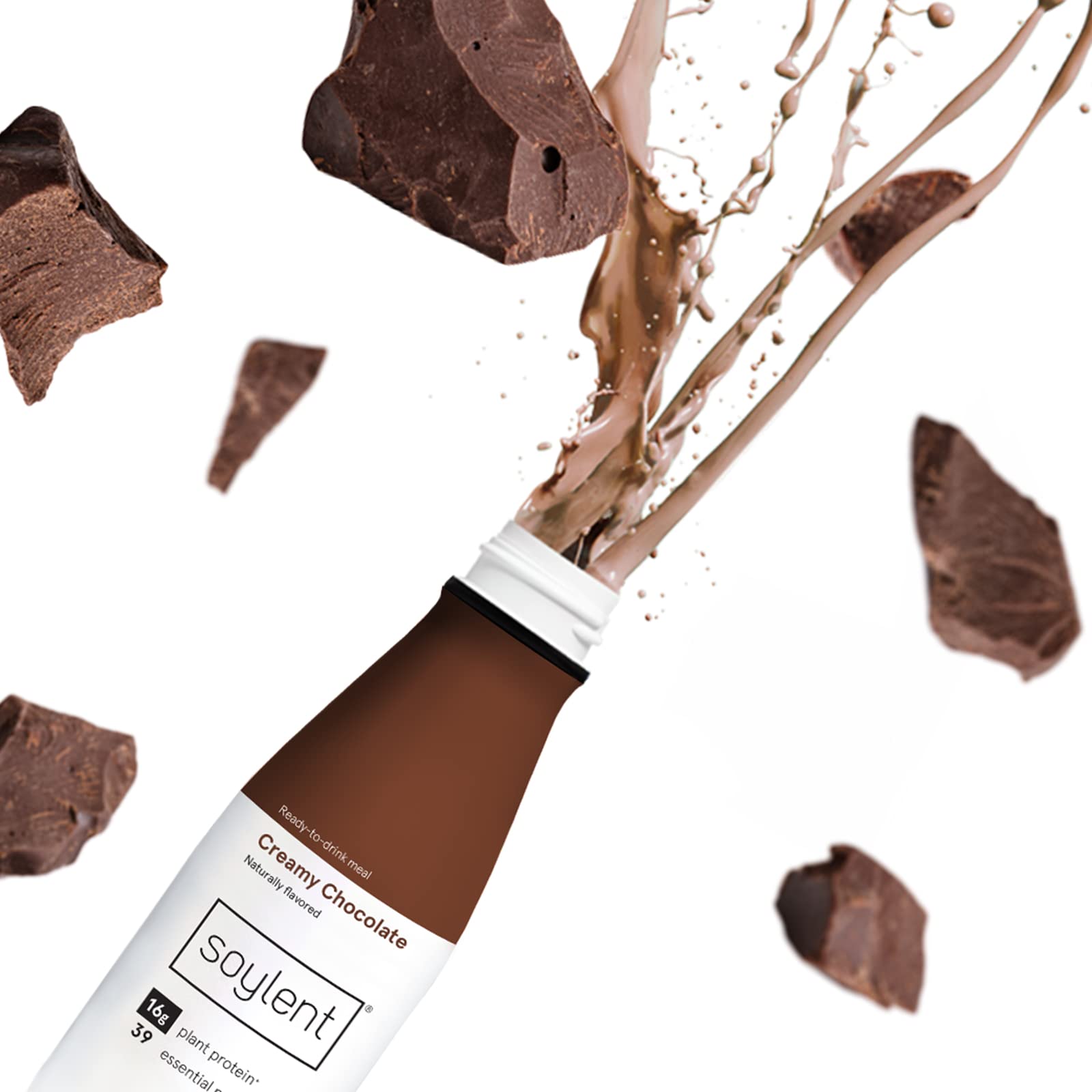 - Q: What are the main ingredients in Soylent Creamy Chocolate Meal Replacement Shake? A: Soylent Creamy Chocolate Meal Replacement Shake is made with plant-based ingredients including sustainable vegan protein, 28 vitamins and minerals, and omega-3 fatty acids. It contains no artificial flavors or colors, making it a nutritious option for anyone looking for a healthy meal substitute.