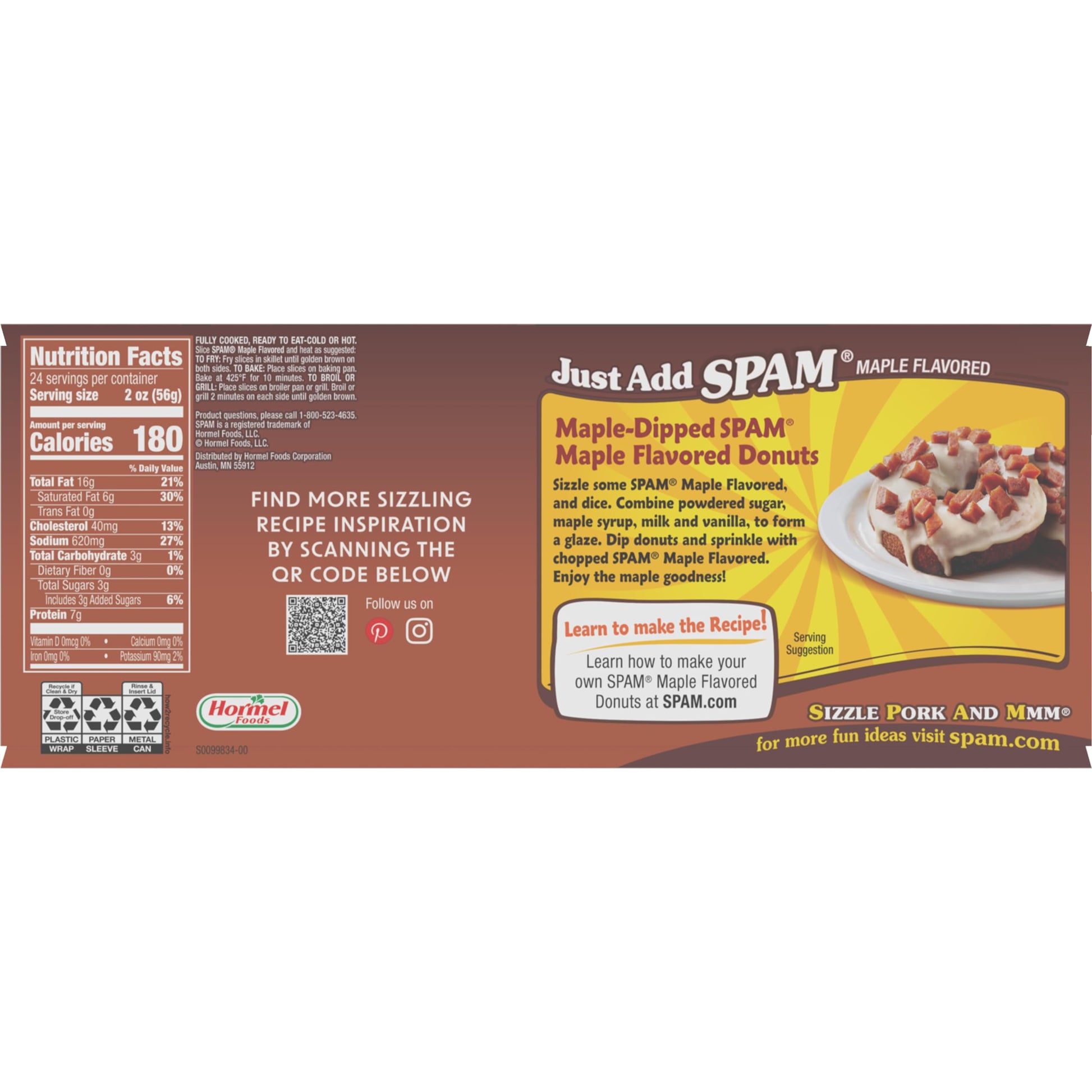 Spam Maple Is The Latest Addition To Your Favorite Brand, The Spam Brand! Spam Maple Is That Perfect Combination Of Sweet And Savory For A Mouthwatering Taste That Kicks Up Any Recipe. The Meat Of Many Uses Adds Meaty Goodness To Classic Dishes Like Waffles, Omelets Or Burgers And Itll Elevate Spam Musubi, Breakfast Burritos, Roasted Veggies Or Appetizers To Another Level Of Mmm. Thats Why Its Americas #1 Canned Luncheon Meat Brand*! Fully Cooked And Shelf Stable, Spam Maple Works Great For Hot Family Meals, Cold Lunches Or Bbqs! You Can Add It To Breakfast, Lunch And Dinner And Know Youre Getting The Good Stuff With 7 G Of Protein Per Serving. You Get Four 12 Oz. Cans Of Spam Maple.