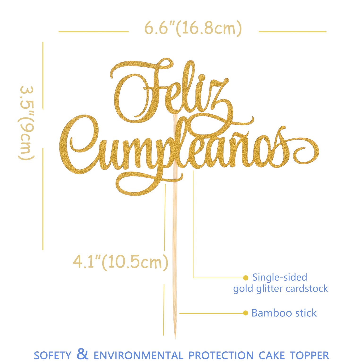 Feliz Cumpleaos Cake Topper Are Suitable For Decorating Birthday Cakes Of All Ages, Such As 1 Year Old, 2 Years Old, 10 Years Old, 70 Years Old, 80 Years Old, Etc. Approximately 5.9In Wide Is Suitable For Decorating Most Sizes Of Cakes. It Is The Perfect Decoration For Your Birthday Cakes, Light Up Birthday Parties And Bring Joyful Atmosphere. The Special Text Style, The Golden Glitter Material, The High-Quality Happy Birthday Cake Made Of Flags, It Is Perfect To Be Used As A Birthday Gift. Don'T Hesitate, Don'T Miss It, Don'T Let Your Birthday Leave Regrets, You Deserve It.