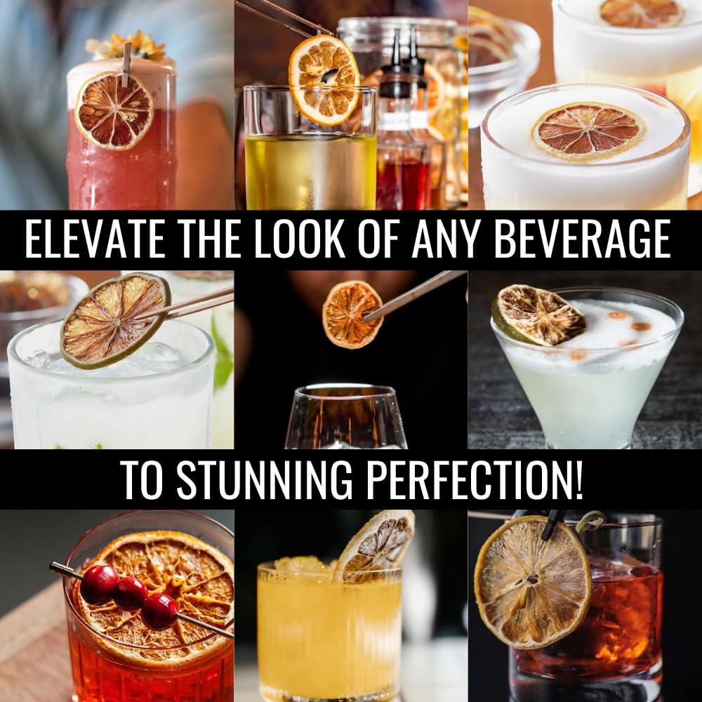- Q: How should I use the dehydrated citrus slices in my drinks? A: The dehydrated citrus slices can be used as garnishes for cocktails, mocktails, and teas. Simply add a slice to the rim of the glass or within the drink for enhanced flavor and visual appeal.