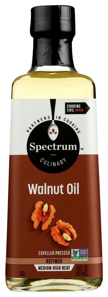 Details:Spectrum Naturals Expeller Pressed Walnut Oil Is Perfect For Medium Heat Cooking As Well As Salad Dressing Certified Kosher, Non-Gmo, This Walnut Oil Is A Non-Hydrogenated Fat Food With A Mild, Nutty Flavor That Lends Itself To Seafood Dishes And Salad Dressings Our Delicious Walnut Oil Has 1,900 Mg Of Omega-3 Fatty Acids Per Serving Includes One 16 Oz Bottle Of Cholesterol And Trans-Fat Free Spectrum Naturals Expeller Pressed Walnut Oilcountry Of Origin : United Statesis Gmo Free : Yesis Kosher : Yessize : 16 Fzpack Of : 12Selling Unit : Caseingredients : Expeller Pressed Refined Walnut Oilkeywords : Bakingcanolacholesterolfreefryingolivesaladsunflower