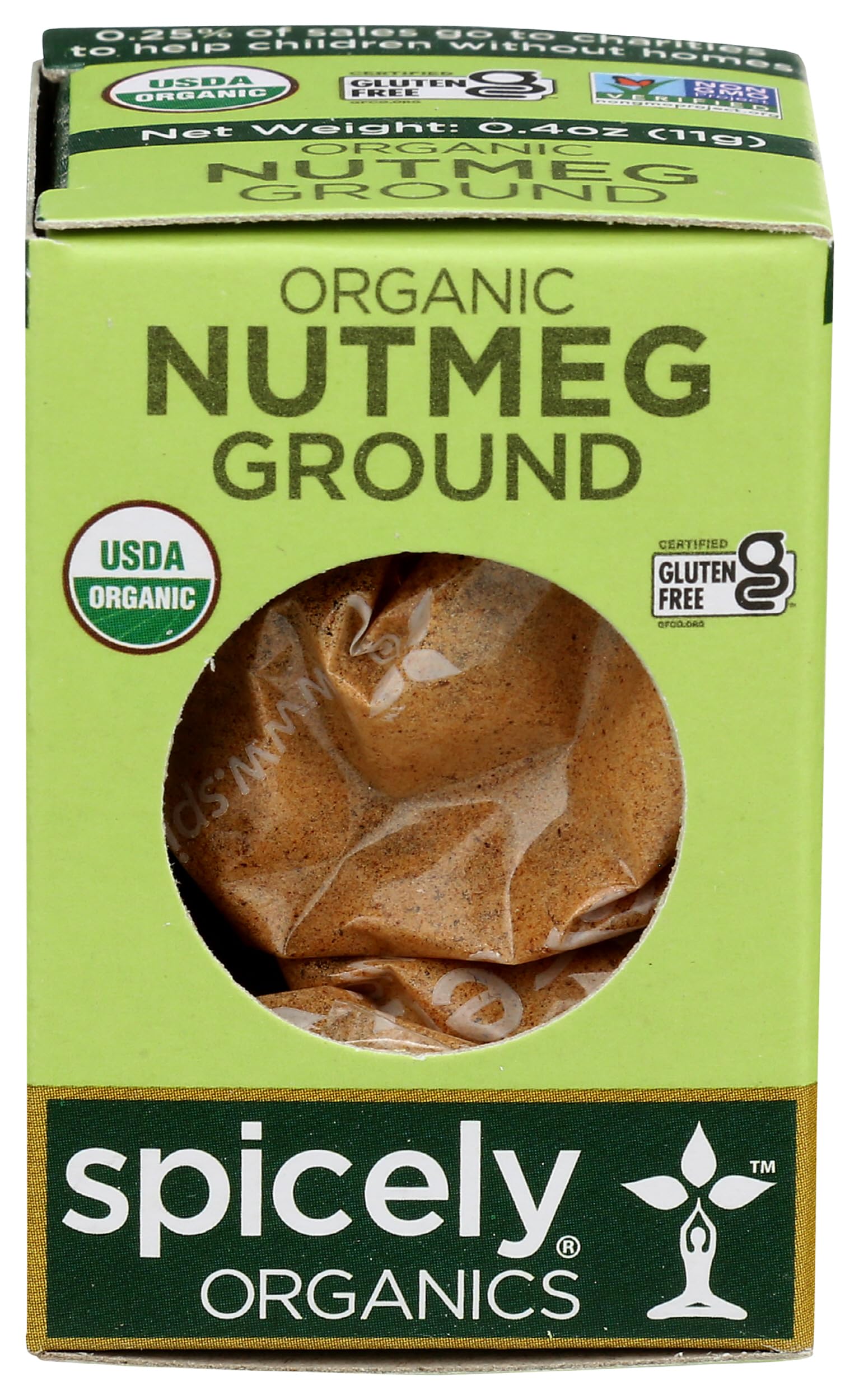 - Q: What is the packaging size of Spicely Organic Nutmeg Ground? A: Spicely Organic Nutmeg Ground comes in a compact size of 0.4 ounces (Pack of 1), which is great for sampling or for those who want to try the spice without committing to a larger container.