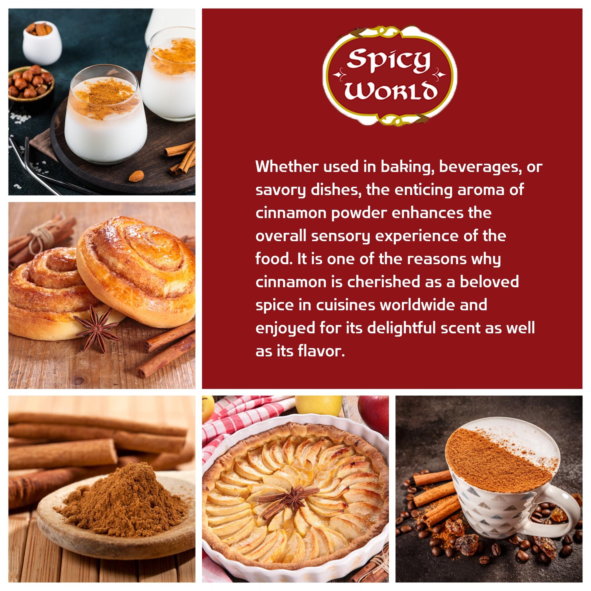 Q: What is the origin of Spicy World Cinnamon Powder?A: Spicy World Cinnamon Powder is sourced from the finest cassia cinnamon plantations in Vietnam, ensuring an authentic flavor and quality that enhances your culinary creations.