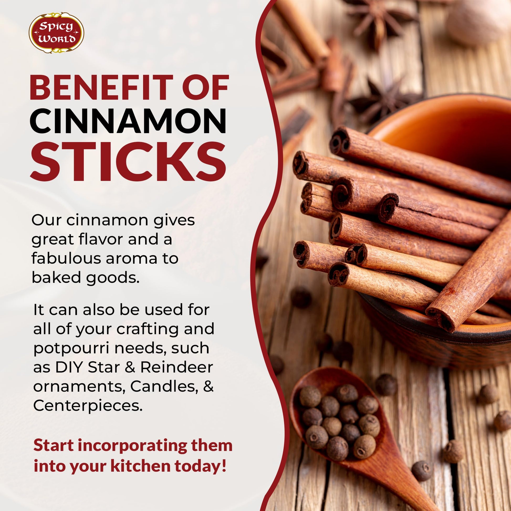 Q: What are Spicy World Cinnamon Sticks used for?A: Spicy World Cinnamon Sticks are versatile and can be used for a variety of purposes including baking, cooking, crafting, making potpourri, and enhancing beverages like tea and hot chocolate.