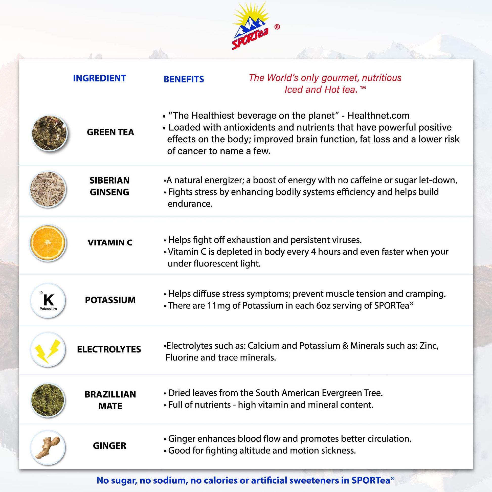 Q: What are the benefits of consuming SPORTea?A: SPORTea offers energizing and sustaining benefits without the crash or jitters associated with many energy drinks. It helps build endurance, fight stress, and promotes peak performance at work and play.