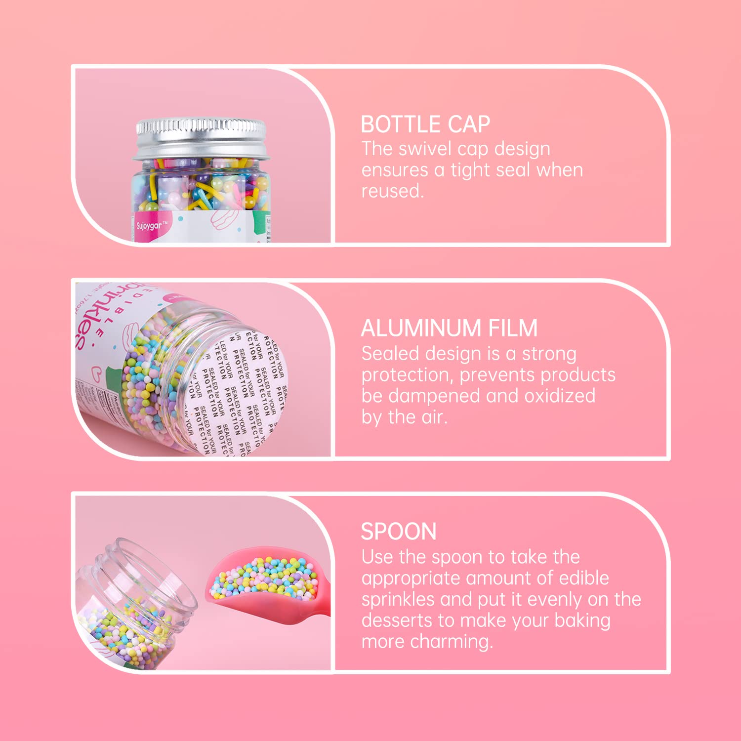 Kosher & Halal Certified: Our Sprinkles Is Made From Safety Ingredients, Gluten Free, Nut Free, Gmo Free, Peanut Free, Soy Free. Use Raw Materials That Meet Food Safety Standards. | Sprinkles-Themed Sprinkles Are Suitable For All Ages And Are A Must For Cake Baking And Decorating. Ideal For Birthdays, Valentines Day, Weddings, Mother'S Day, Anniversaries, Celebrations, Holiday And Loved By Children. The Delicious Sugar Sprinkles Can Impress Guests. Make The Food More Happy Festive. | Easy-To-Use: It Is Recommended To Decorate The Food After Baking, Sprinkles At High Temperatures Will Melt To Varying Degrees. These Quality Sprinkles Can Be Used On Donuts, Cupcakes, Cakes, Ice Cream, Cookies And A Lot More. Tips: The Ball Is Hard, Keep It In Your Mouth, But Don'T Bite. | Shelf Life: Ths Shelf Life Of Sprinkles Is 24 Months, Production Date Please See The Bottle Or Packaging. The Sprinkles Is Cost Effective And The Sealed Lid Can Meet The Needs Of Multiple Food Baking Decorations. Only A Small Spoonful Is Needed For Each Use. | Customer Service: If You Are Not Satisfied With Our Sprinkles Or Service, Please Feel Free To Contact Us By Email In Time. We Always Do Our Best To Settle Your Problems And Inquiries.