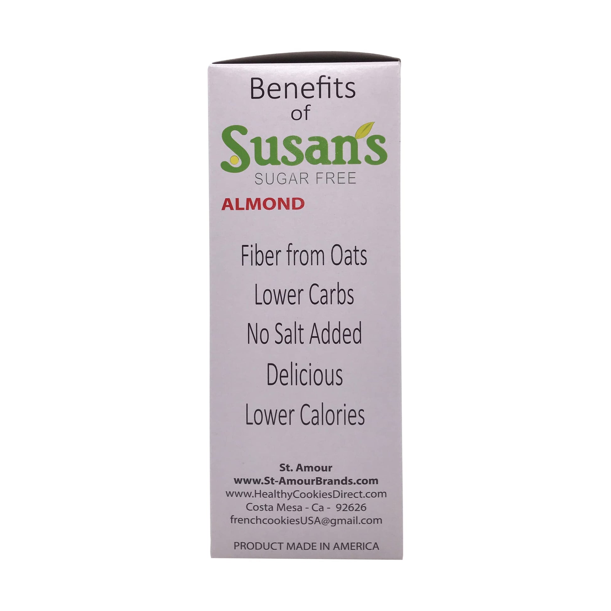 Q: What are the main ingredients in Susan's Sugar Free Cookie?A: Susan's Sugar Free Cookie is made with all-natural ingredients, focusing on providing a delicious taste without added sugars. It features oats and other wholesome components that ensure a crispy texture.